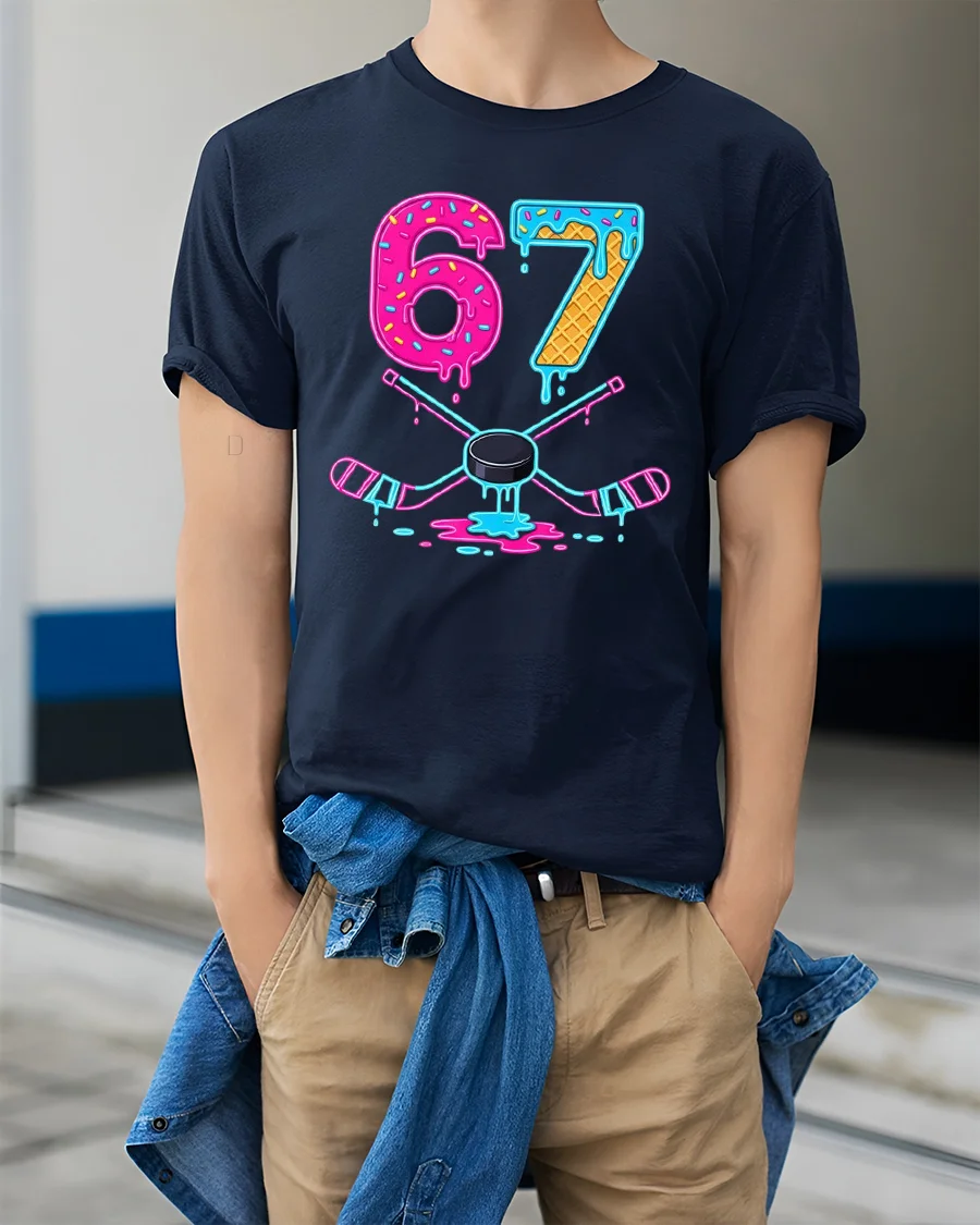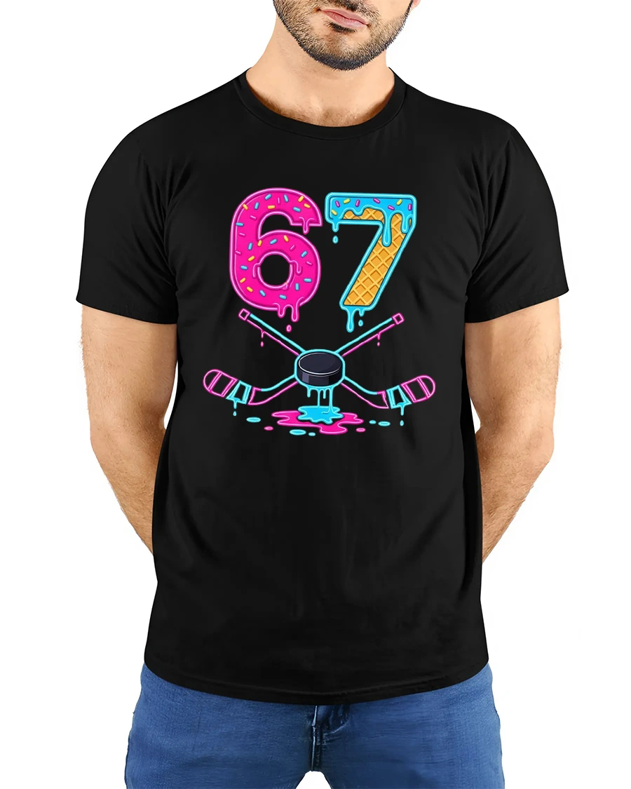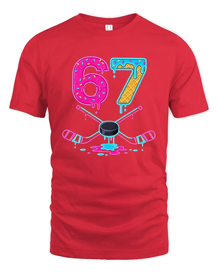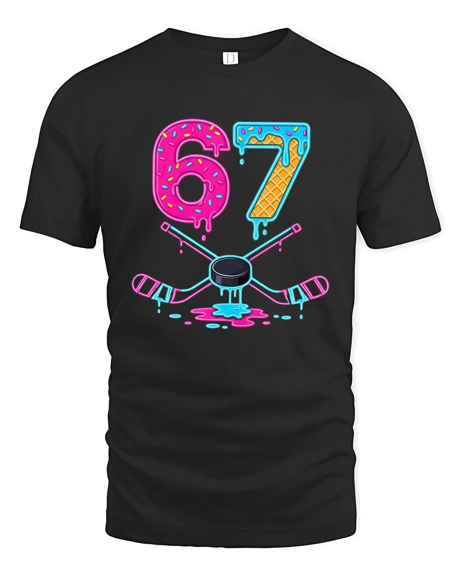 The 67 Neon Donut Hockey T Shirt brings a bold mix of sports attitude and playful street art energy into one unforgettable design.