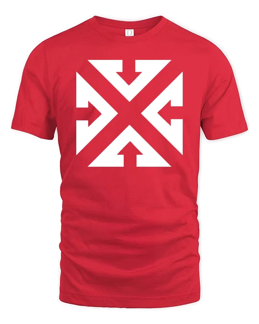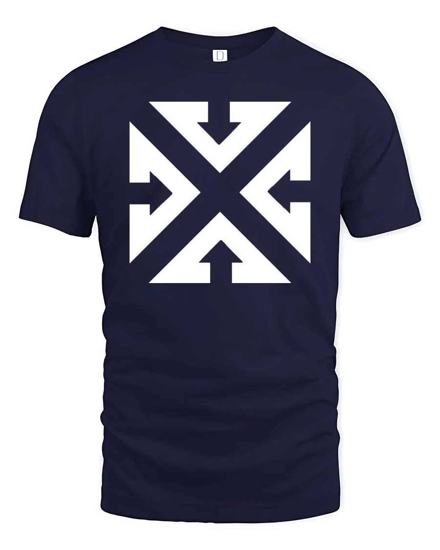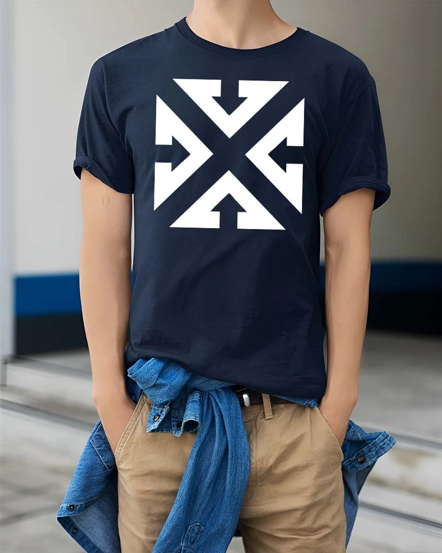 Featuring a sharp geometric arrow pattern forming an eye-catching X shape, this graphic brings a sleek and contemporary edge to your outfit.