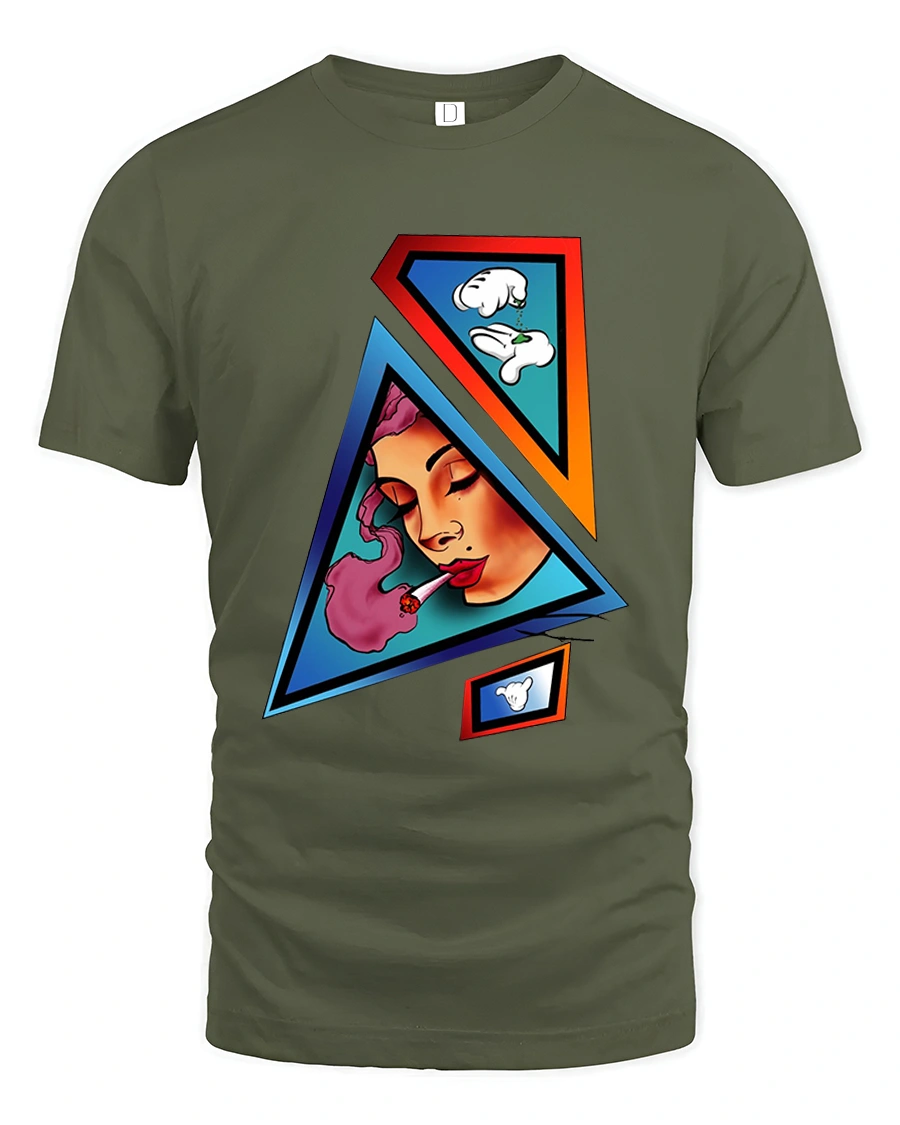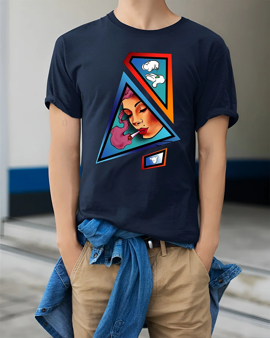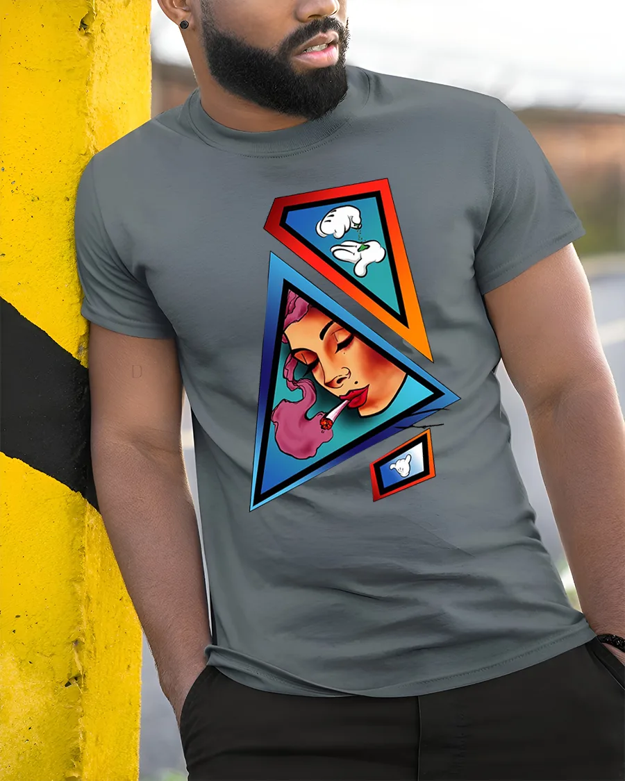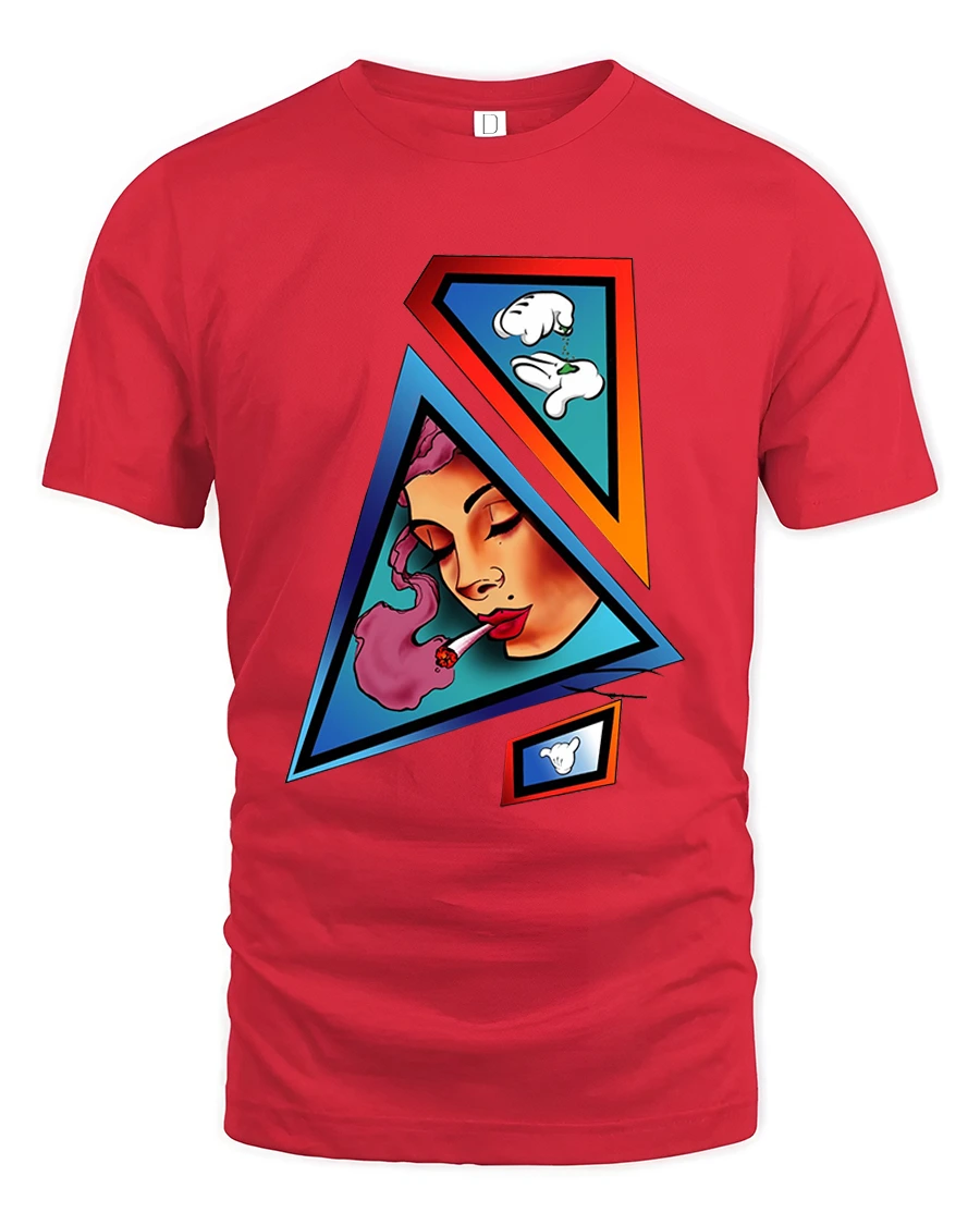 Abstract Smoking Girl Graphic Tee delivers a striking mix of modern art and bold attitude through a vibrant geometric design.