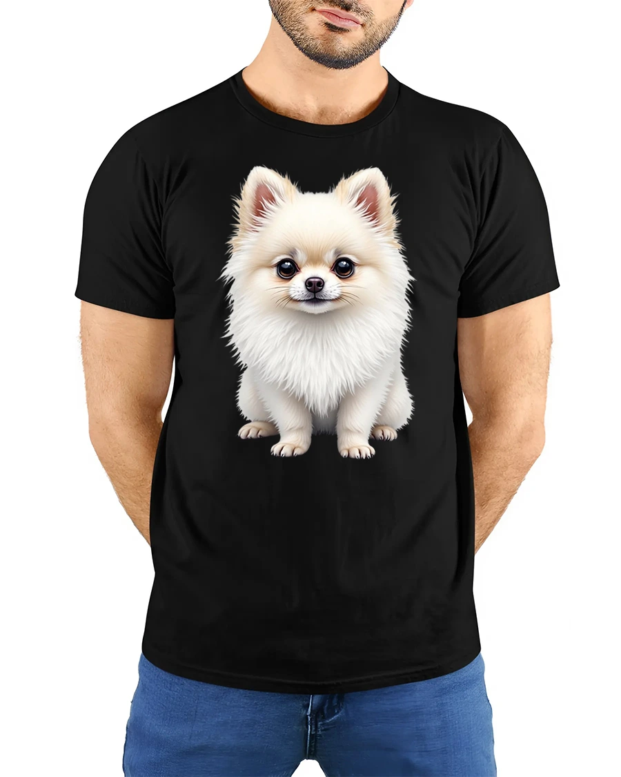 Adorable Fluffy Pomeranian Puppy Illustration Cute Graphic T Shirt blends gentle aesthetics with playful personality.