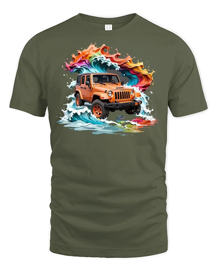 Adventure Wave Rider Off-Road Jeep Graphic T-Shirt is perfect for thrill-seekers, beach lovers, and Jeep enthusiasts who live for adventure. Featuring a bold orange Jeep cutting through vibrant ocean waves with splashes of rainbow colors, this tee captures the spirit of freedom and excitement on and off the road.