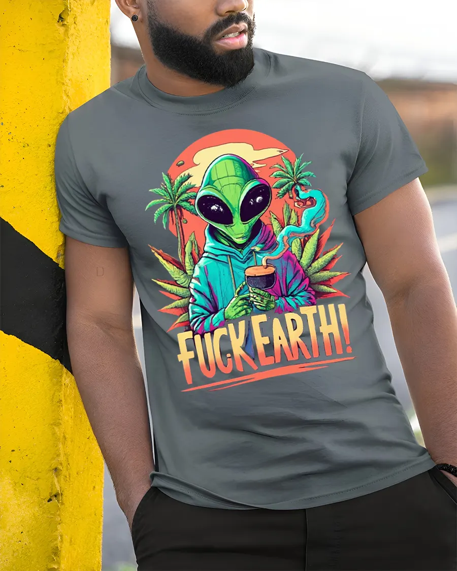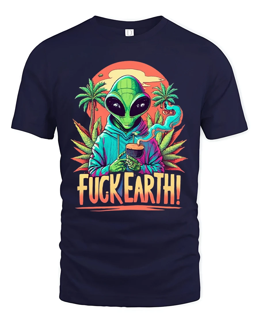 Alien Fuck Earth Graphic Tee With Retro Psychedelic Art is a bold and funny statement piece made to stand out.