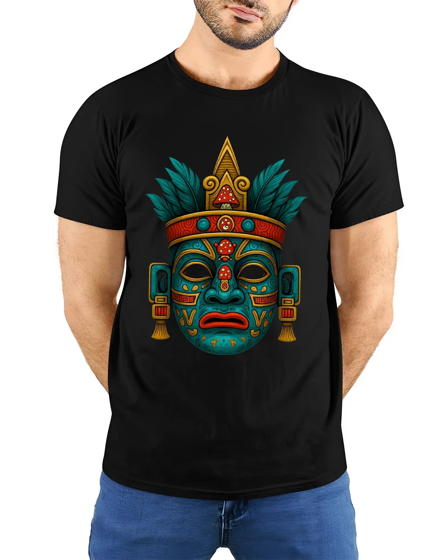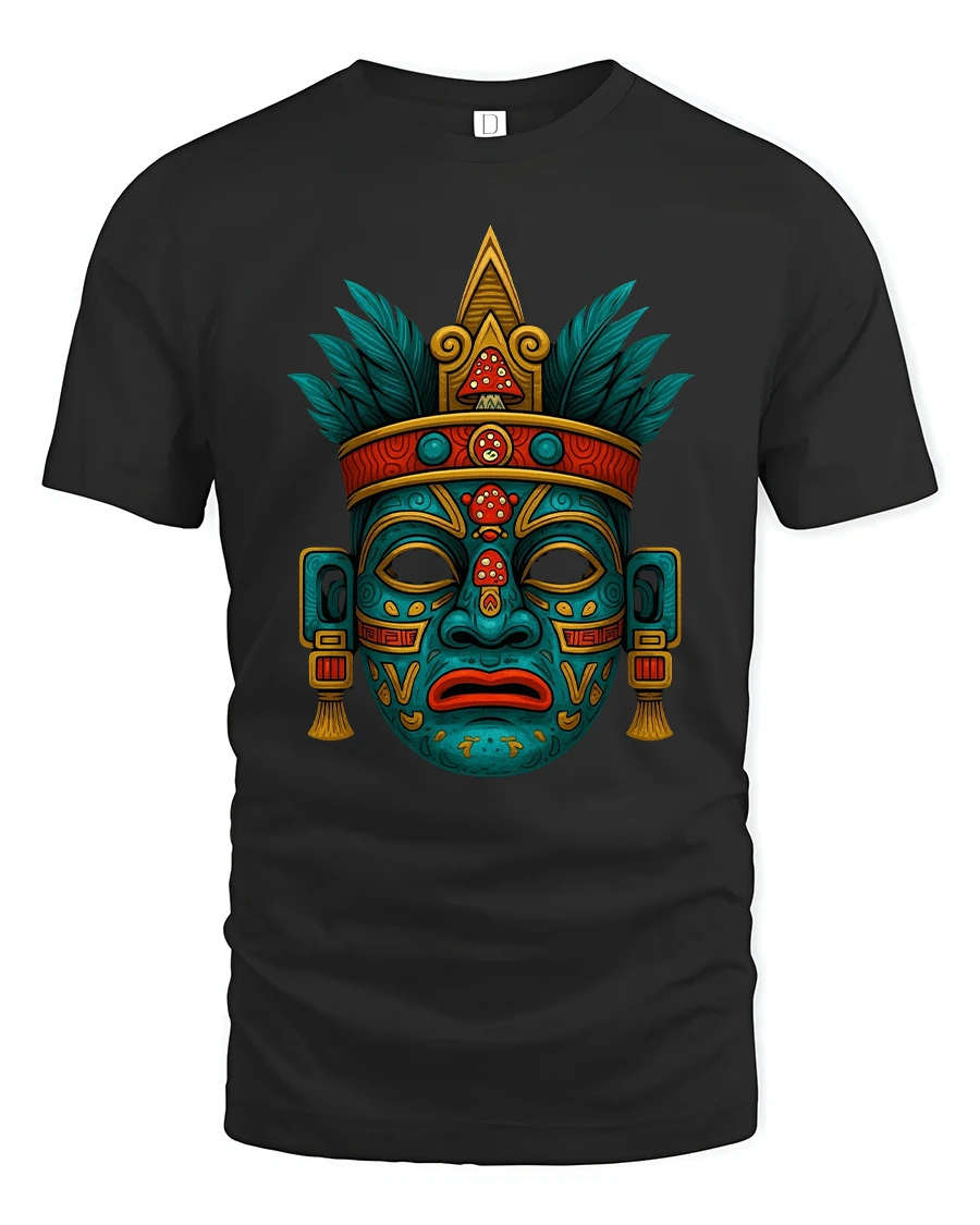 Ancient Tribal Mask Symbol Art Graphic Tshirt Mystic Culture showcases powerful symbolism drawn from traditional ceremonial mask designs.