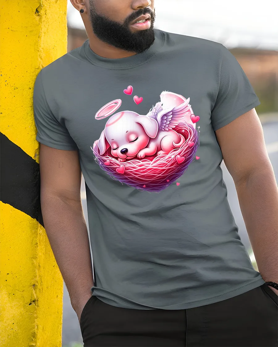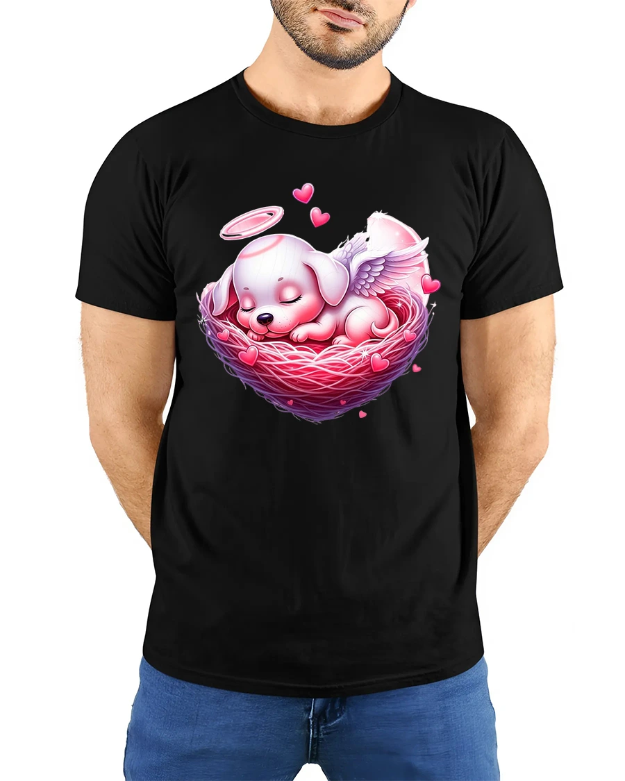 Made from soft breathable fabric, this tshirt offers lasting comfort while showcasing a vibrant high quality print that keeps every delicate detail bright and crisp. The adorable puppy graphic adds a dreamy and affectionate touch to any casual outfit. Whether you love cute pet designs or simply enjoy feel good artwork, this angel puppy tshirt brings warmth, tenderness, and playful charm into your everyday style.