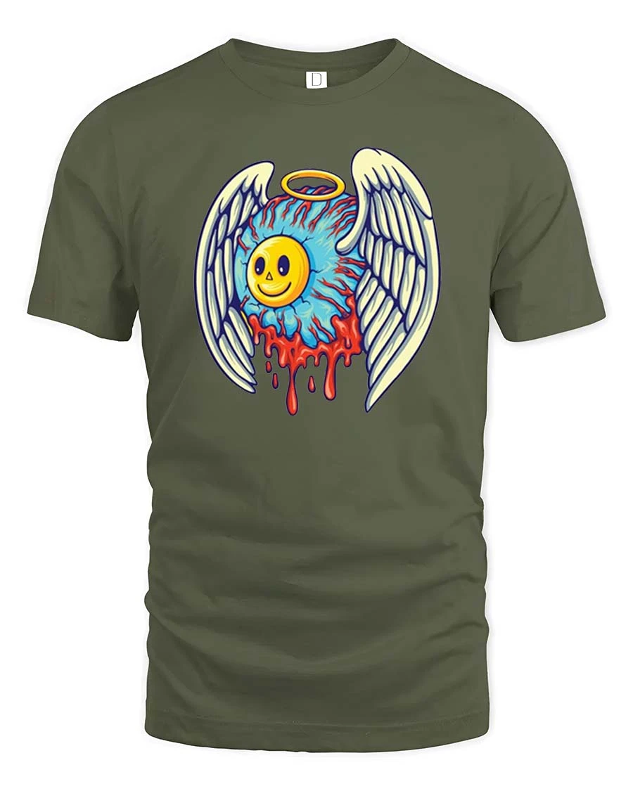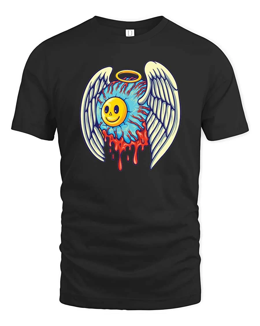 Angel Smile Melting Heart Graphic t-shirt Soft Feel presents a striking artistic concept combining symbolic wings halo and expressive melting design elements.
