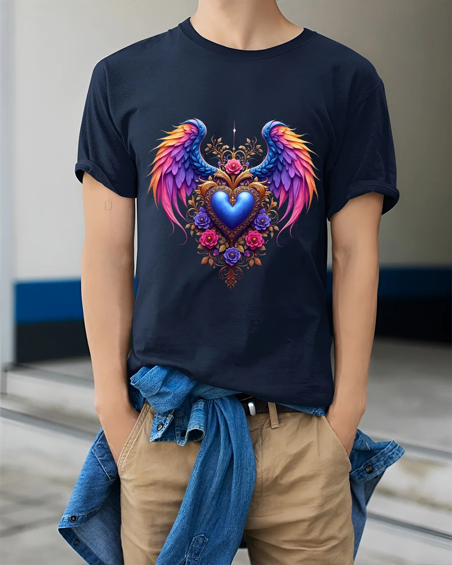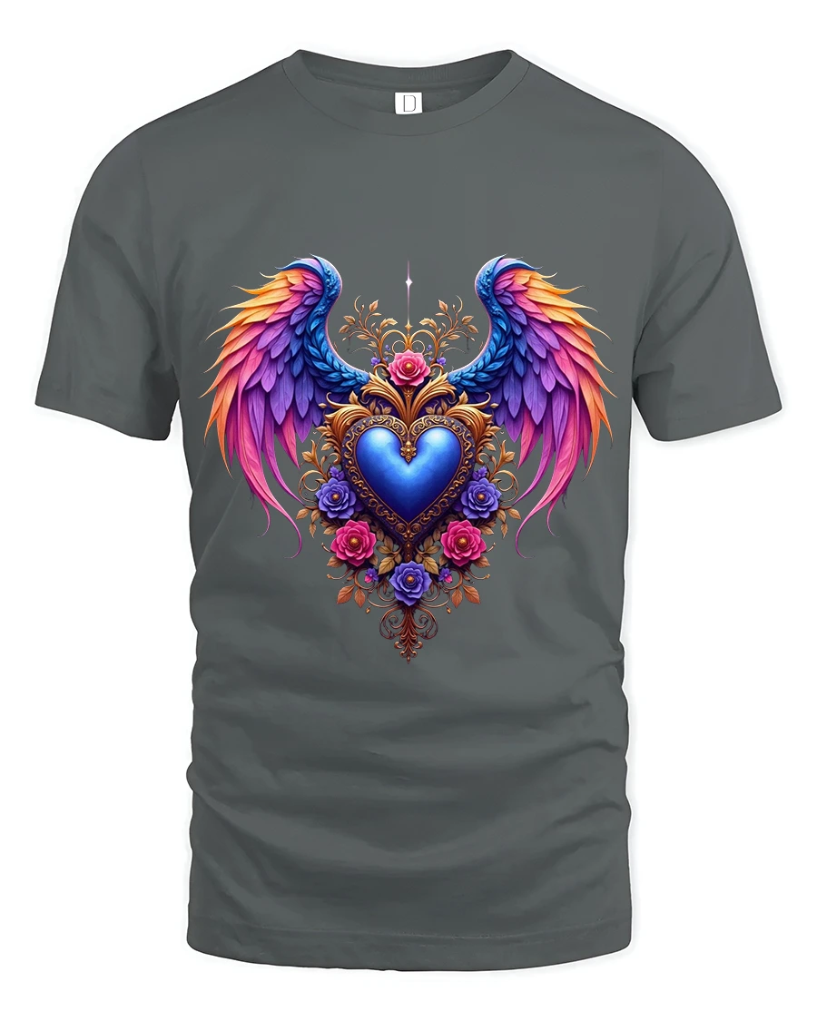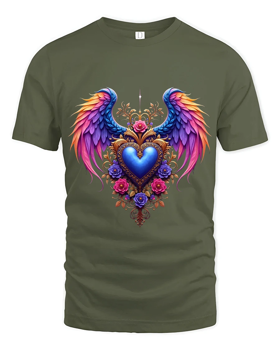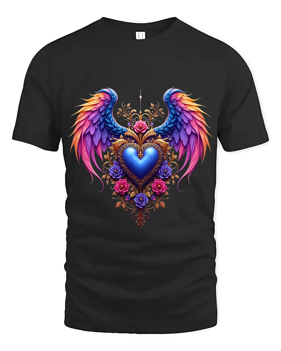 The Angel Wings Heart Art Tee Spiritual Love Graphic T Shirt blends fantasy, romance, and spiritual symbolism into one powerful wearable artwork.