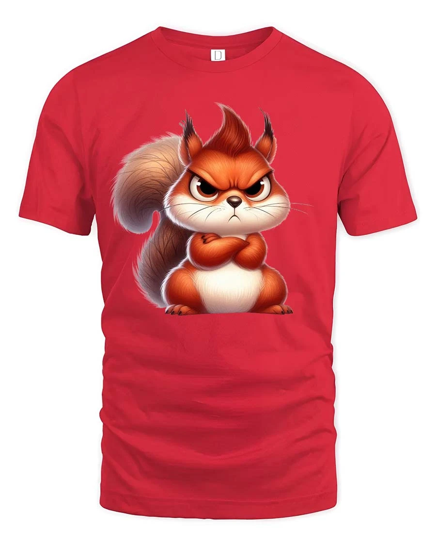 Add a playful edge to your style with this angry squirrel t-shirt featuring a cute yet grumpy animal design.