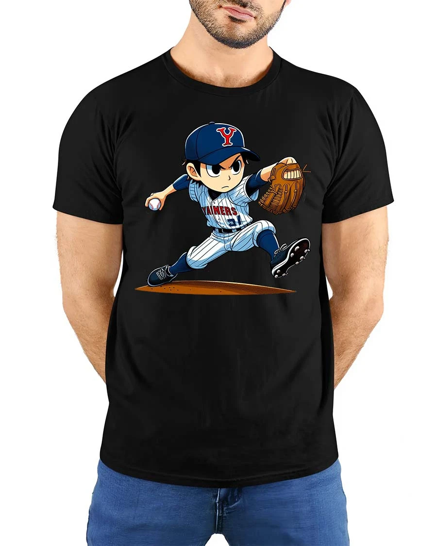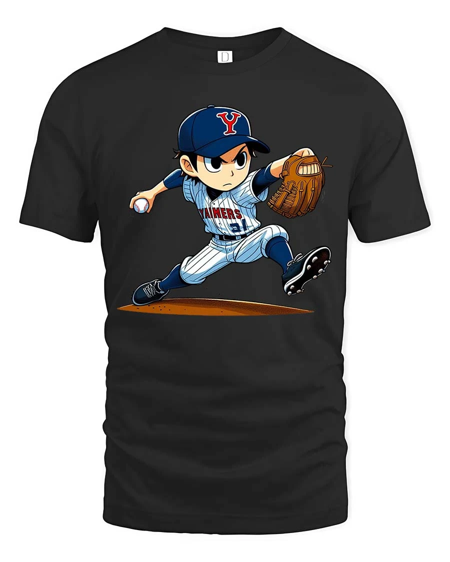 Baseball Pitcher Cartoon T-Shirt Sports Graphic Youth Tee brings energy and fun to any baseball fan’s wardrobe.