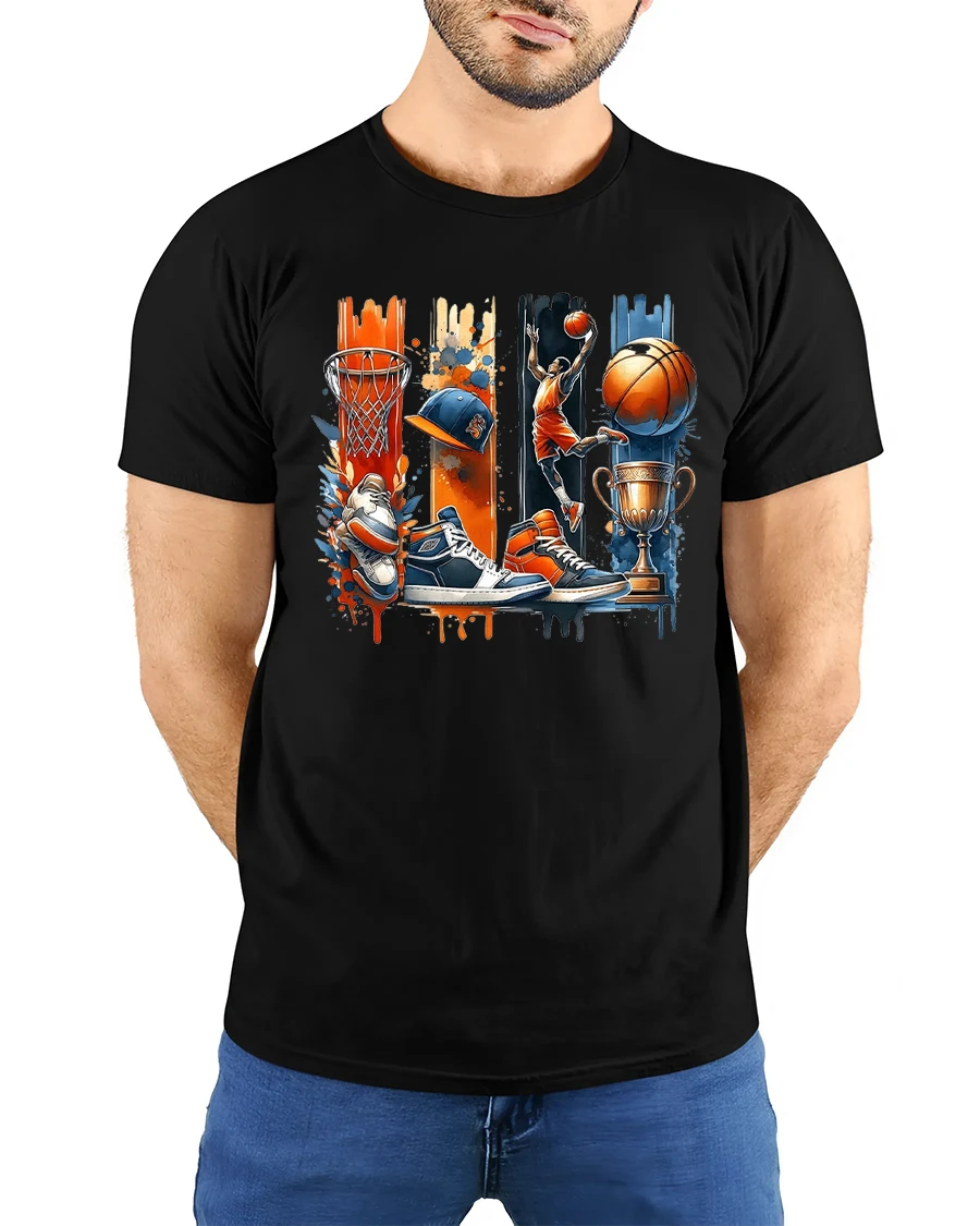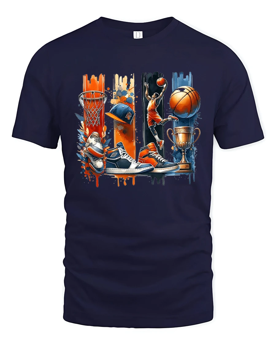 Featuring dynamic basketball graphics with sneakers, hoops, and a slam dunk moment, this design captures everything you love about the game.