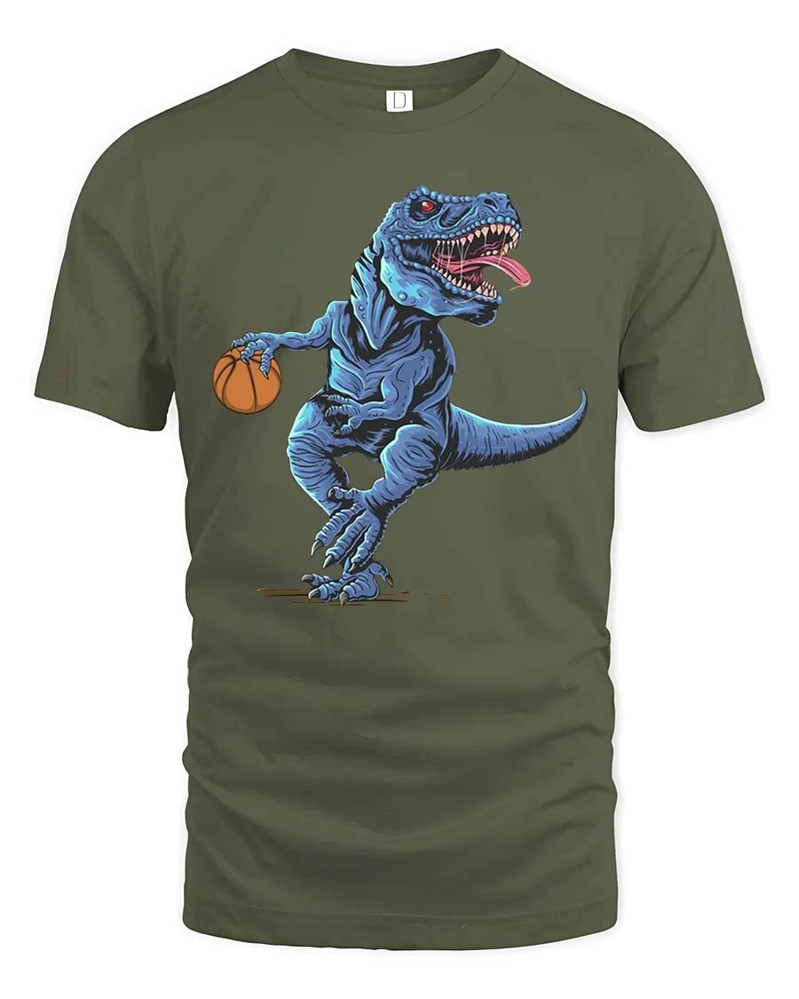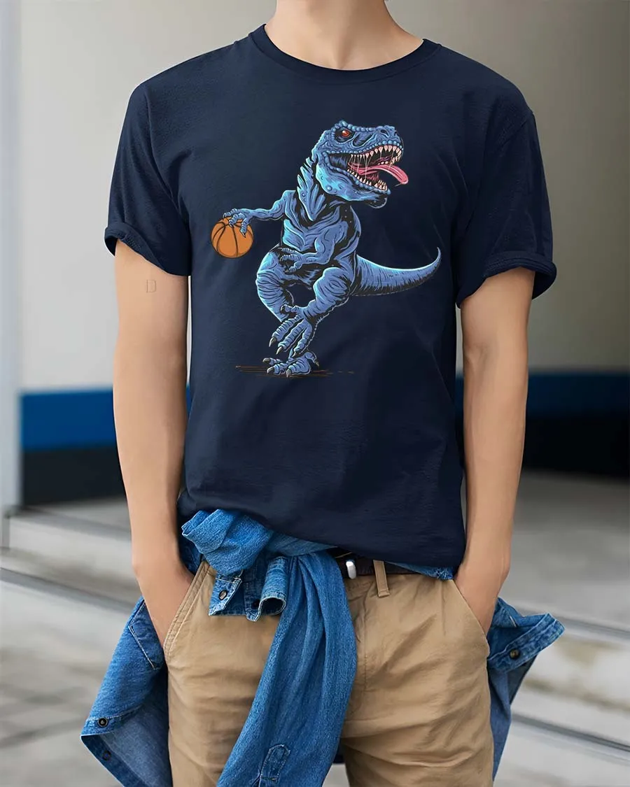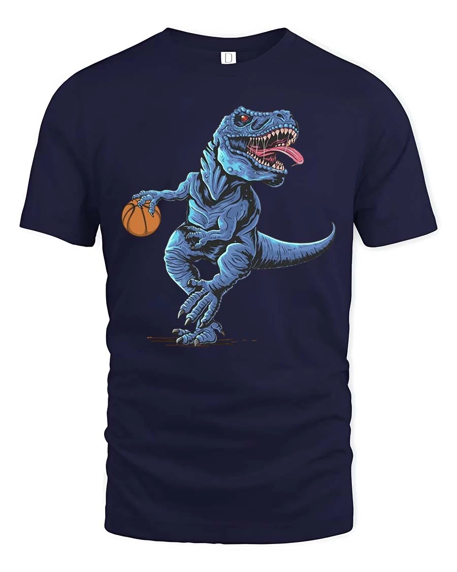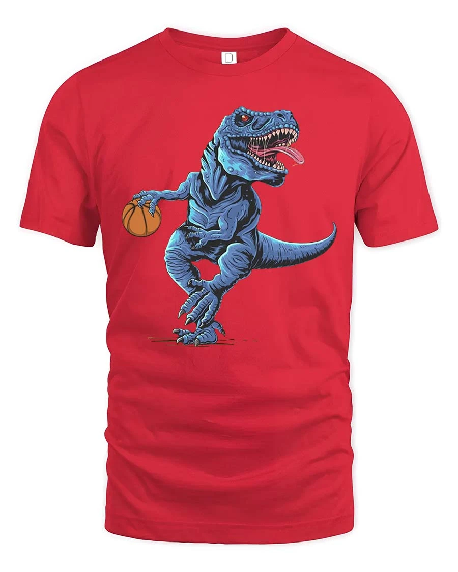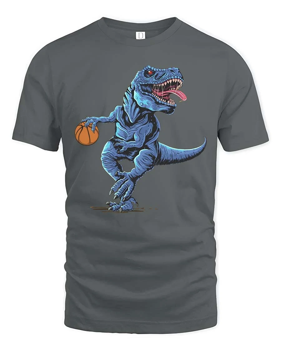 Perfect for casual wear or as a fun gift, this tee is ideal for basketball fans and dinosaur lovers alike.