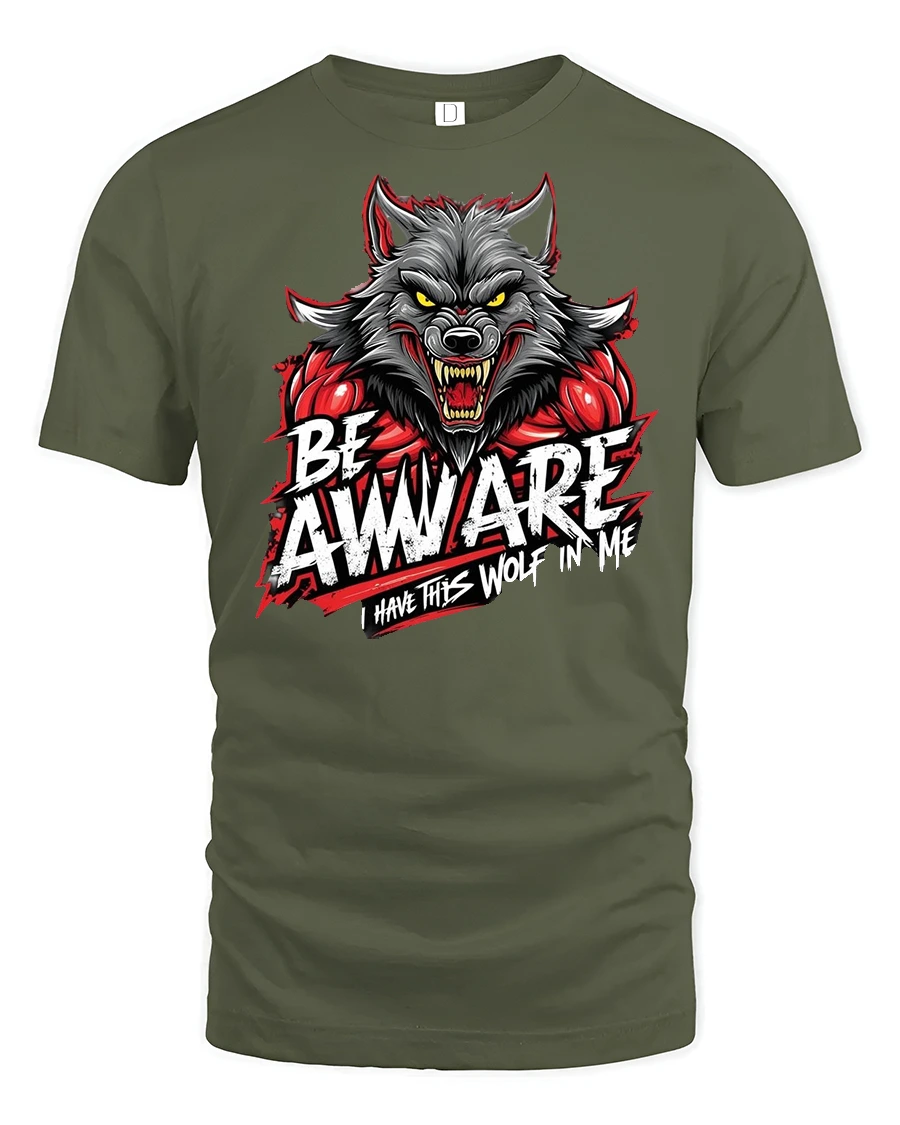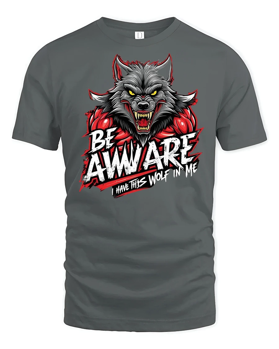 Be Awware Wolf Graphic Tee with Bold Statement Print is the perfect choice for those who want to showcase their fierce side. Featuring a powerful werewolf illustration paired with the bold text “Be Awware – I Have This Wolf in Me,” this shirt is designed to grab attention and reflect strength.