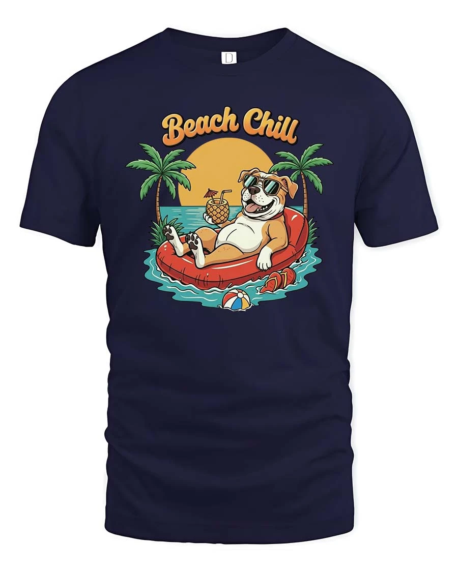 Beach Chill Dog T-Shirt Funny Summer Vacation Graphic Style captures the carefree spirit of sunny days and relaxing ocean vibes.