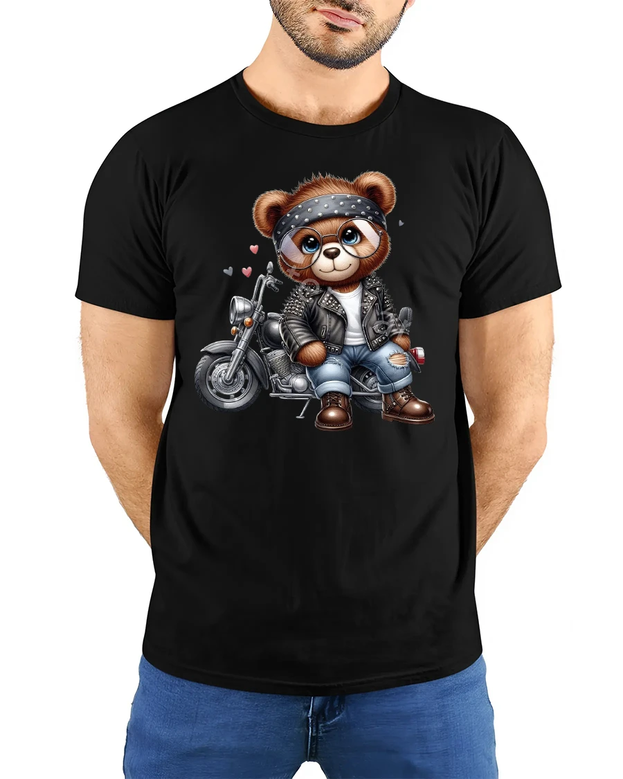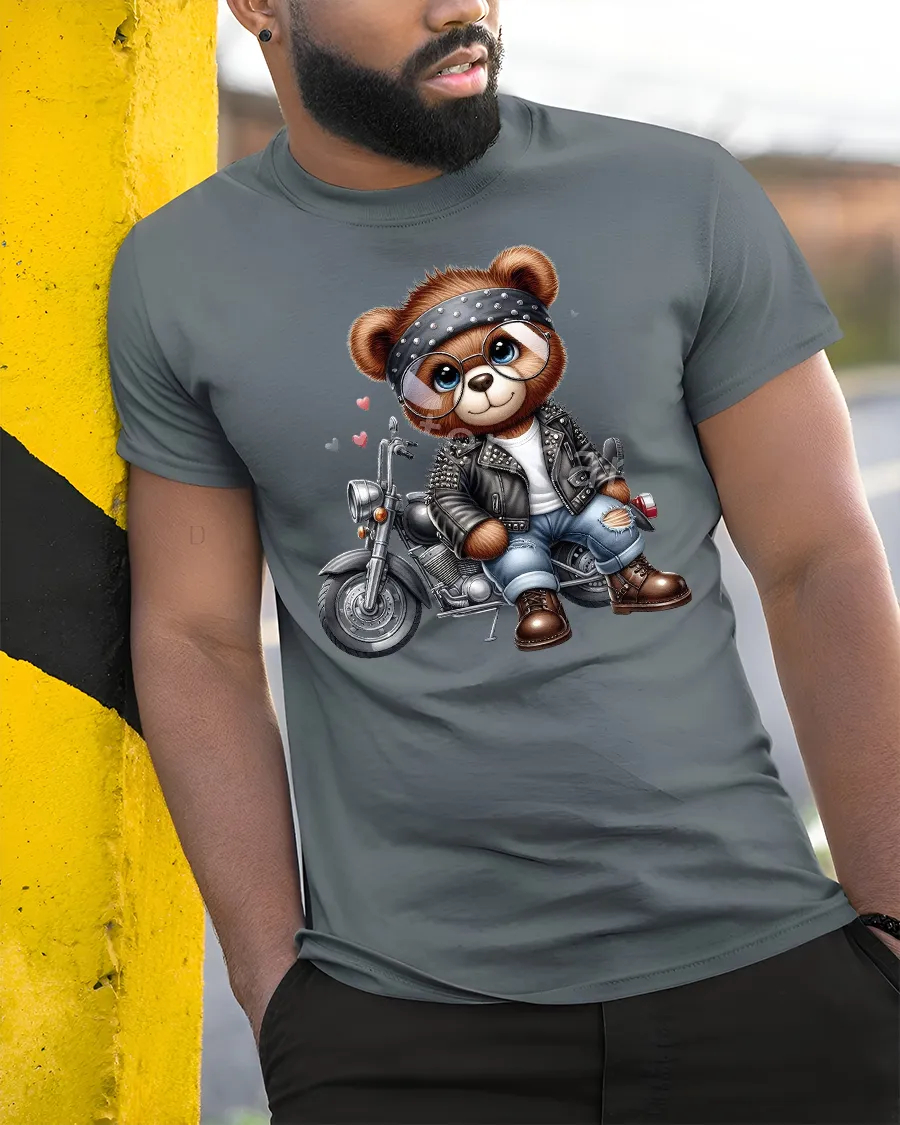 Biker Teddy Bear Motorcycle Rider Funny Graphic T-shirt is the ultimate mix of adorable and rebellious style. Featuring a teddy bear dressed in a black leather jacket, ripped jeans, boots, and bandana while sitting confidently on a motorcycle, this tee blends cuteness with classic biker edge. It’s the perfect shirt for anyone who loves both motorcycles and unique animal art.
