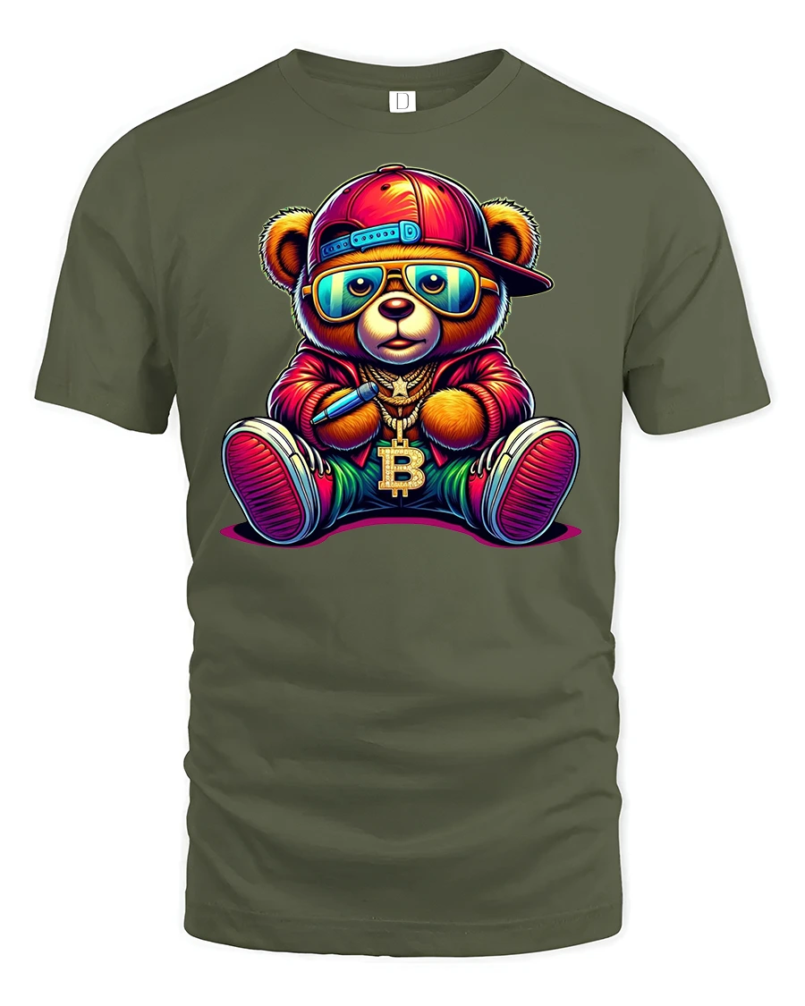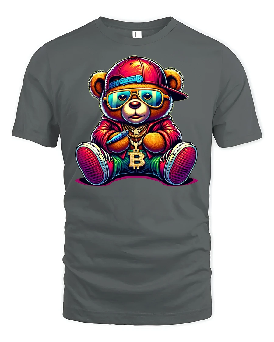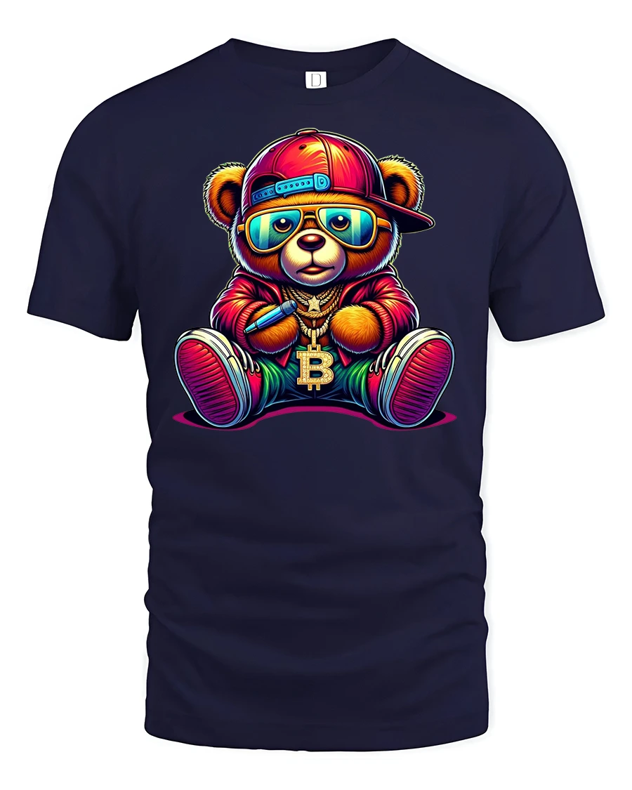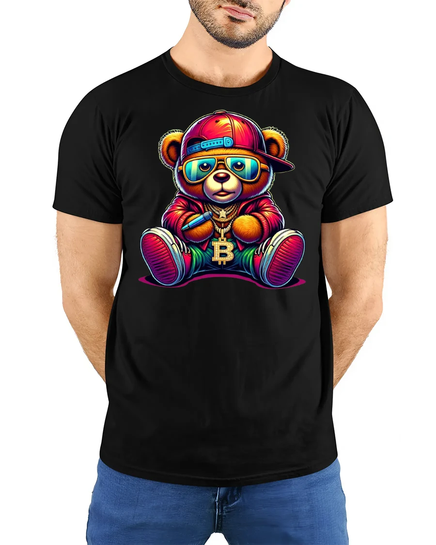 Bitcoin Hip Hop Bear Graphic Streetwear Printed Tee is the ultimate blend of cool urban fashion and crypto culture. Featuring a colorful bear in a hip hop outfit, complete with sunglasses, cap, sneakers, and a bold Bitcoin chain, this shirt is a must-have for anyone who loves cryptocurrency and streetwear style.