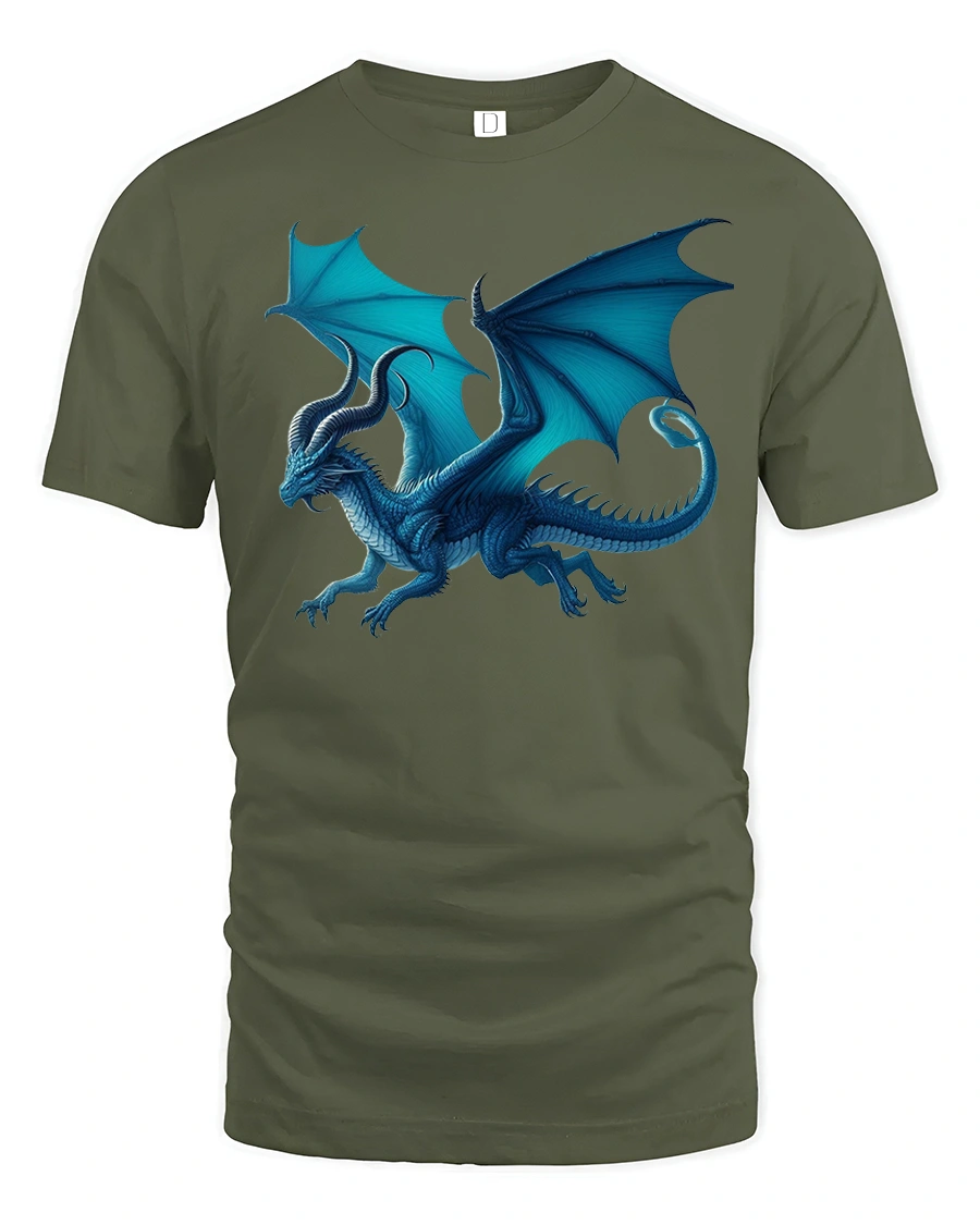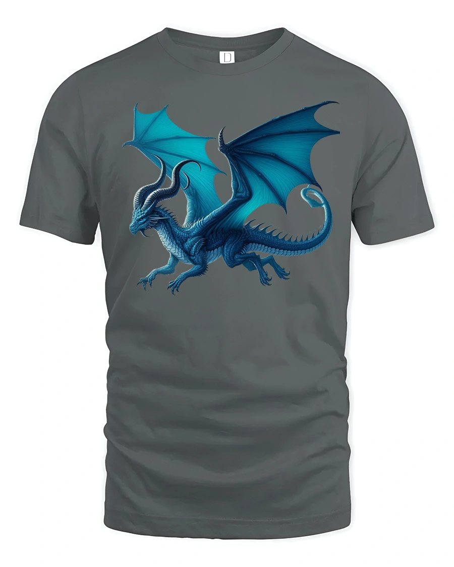 Featuring a majestic blue dragon with spread wings and intricate scale details, this design captures the essence of power, freedom, and imagination.