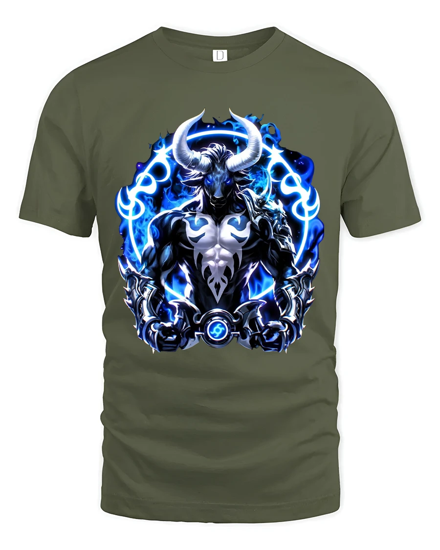 Blue Flame Minotaur Power Fantasy Art Graphic Tee Shirt delivers an intense mythical presence inspired by ancient legends and modern fantasy art.