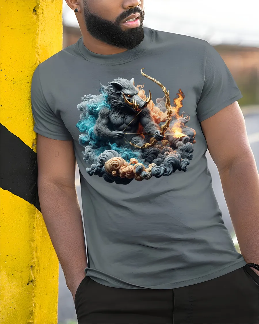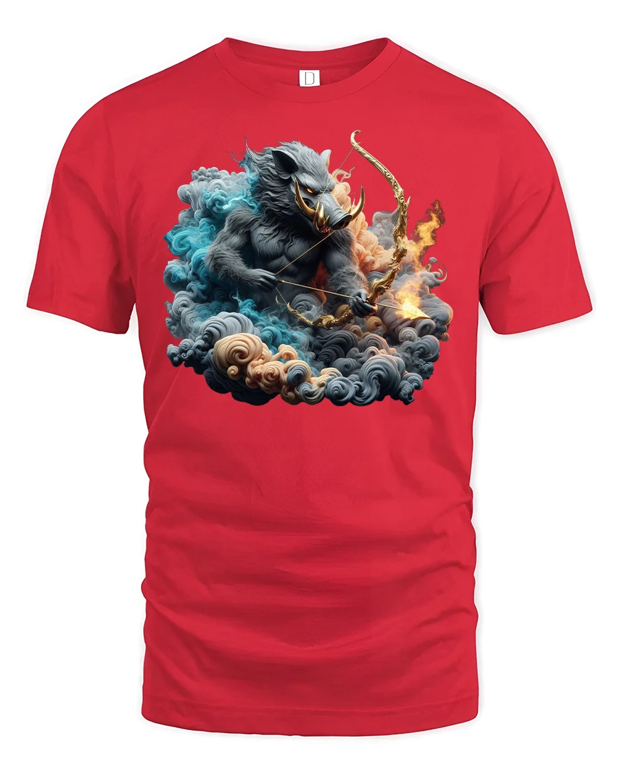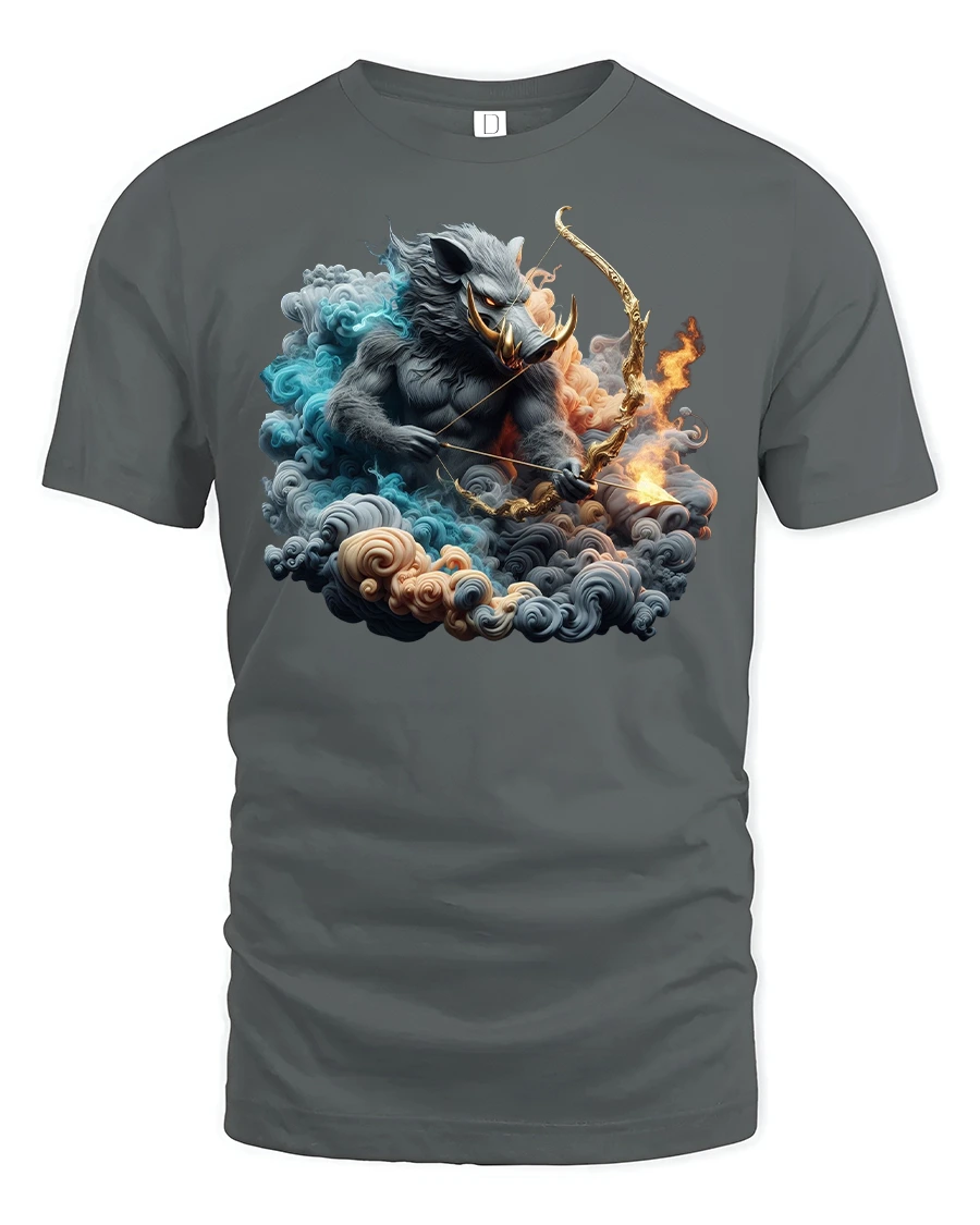 Boar Archer Fire and Ice Warrior Fantasy Art T-Shirt brings the untamed power of mythical beasts to life.