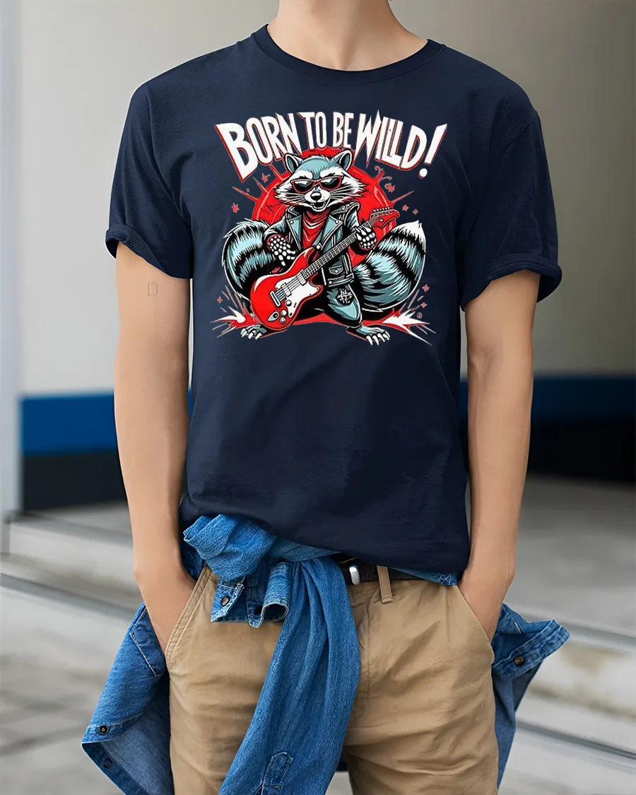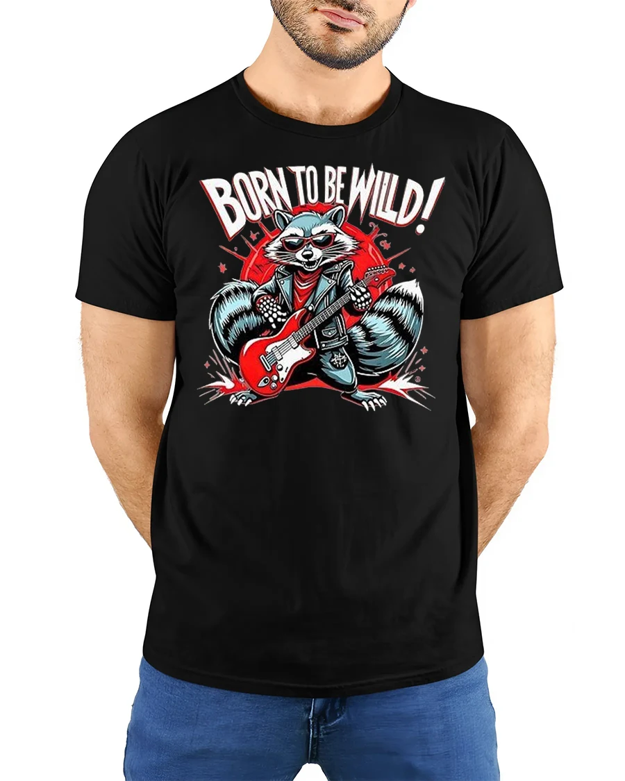 Born to Be Wild Rock Raccoon Graphic Printed T-shirt is the perfect choice for anyone who loves music, humor, and unique animal art. Featuring a cool raccoon rocking out on a red electric guitar with bold “Born to Be Wild” lettering, this tee brings together rock culture and playful animal vibes in one unforgettable design.