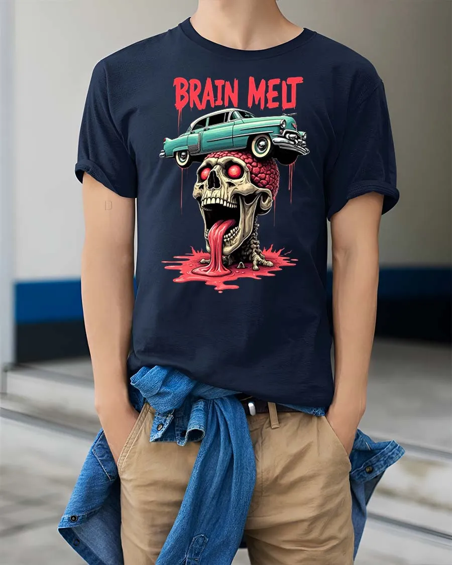 Brain Melt Skull Horror Retro Car Graphic Dark Art T-Shirt