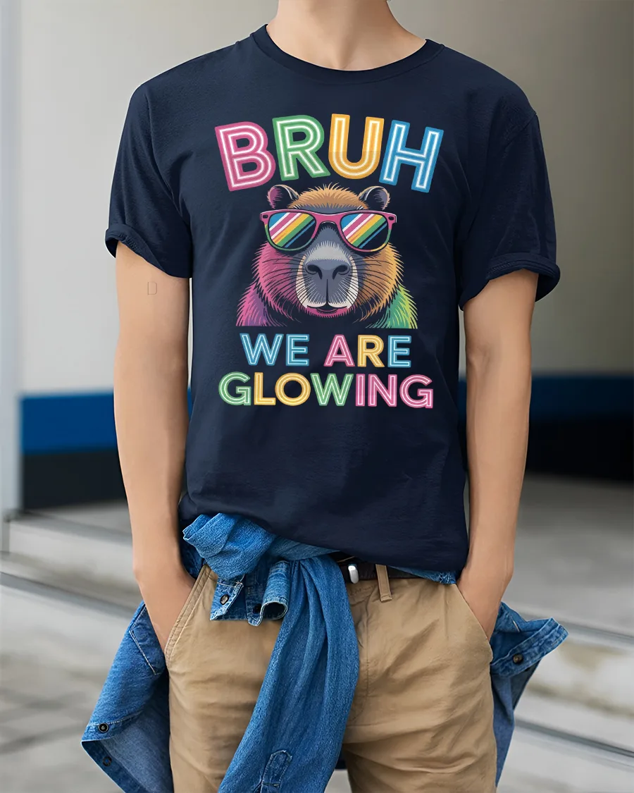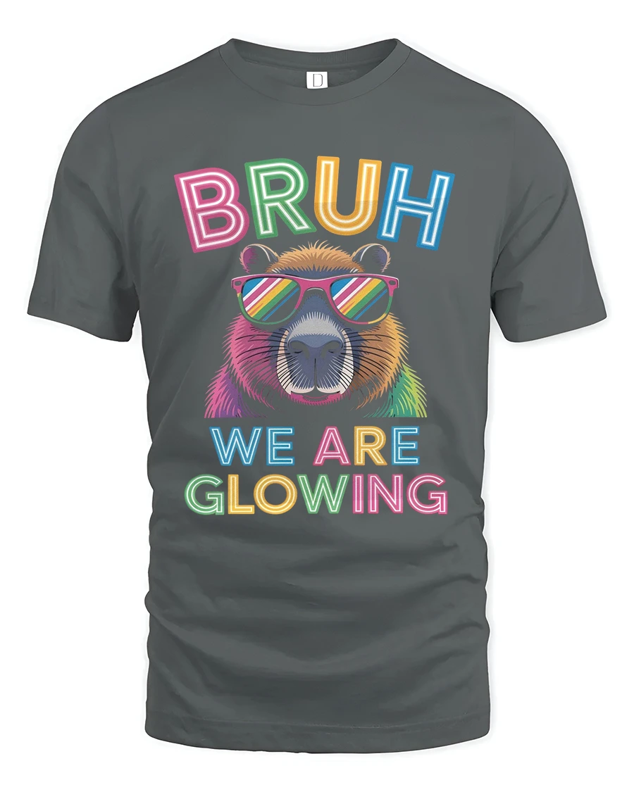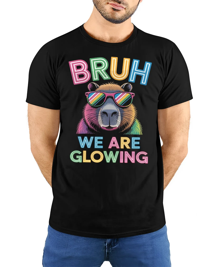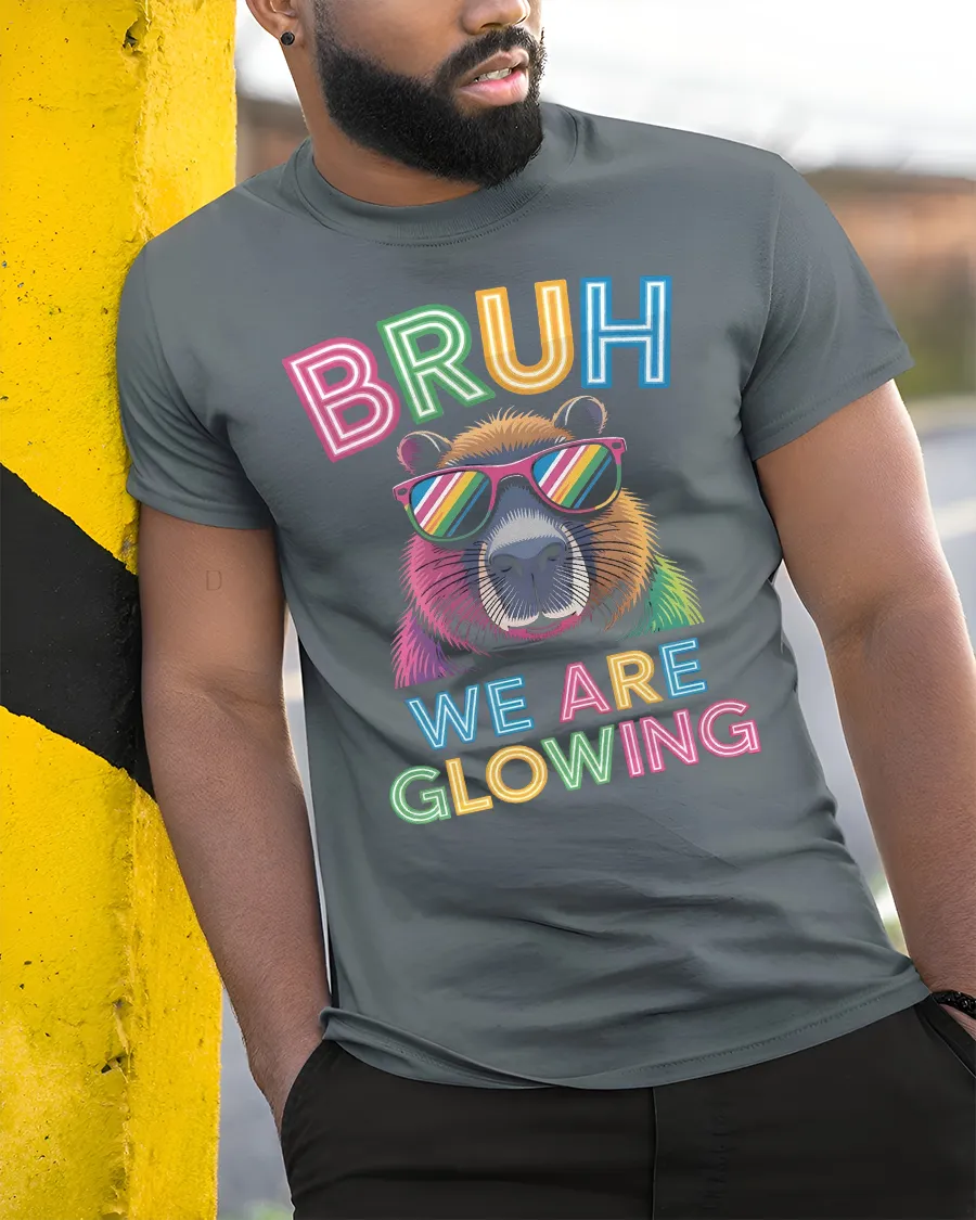 Whether worn at parties casual hangouts or simply as a fun mood booster the Bruh We Are Glowing Neon Bear Funny Retro Style Graphic Tee brings joy and personality everywhere you go. Its bold glowing theme also makes it a great choice for those who enjoy creative expressive fashion with a humorous twist.