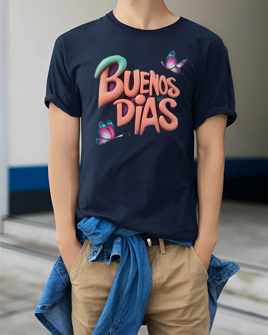 Whether you’re greeting the day with a smile, showing pride in Hispanic culture, or just love colorful graphic tees, the Buenos Días Butterfly T-Shirt Positive Vibes Graphic Tee is a stylish addition to your wardrobe. Perfect for everyday wear, festivals, or spreading good energy wherever you go.