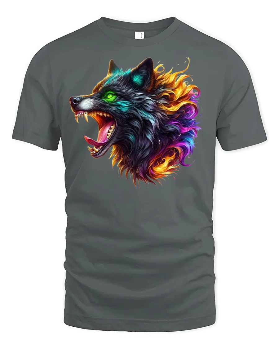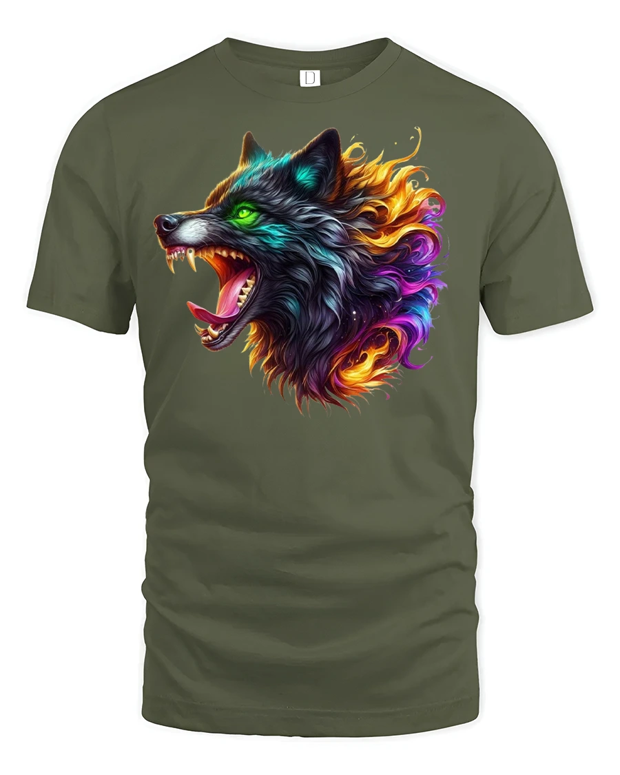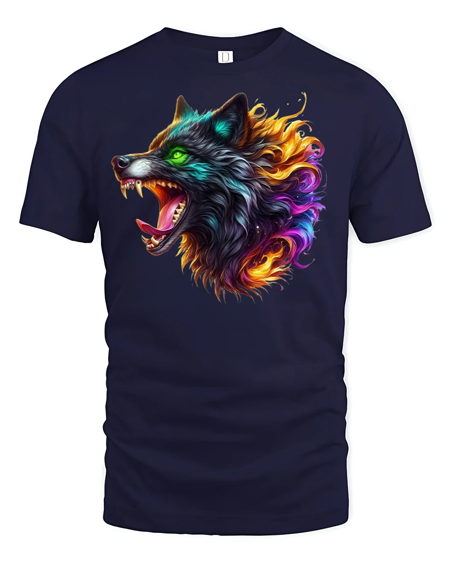 Unleash your inner alpha with the Fierce Neon Flame Wolf Head Graphic Art T-Shirt. Whether you’re a wolf lover, a fan of unique fantasy artwork, or someone who embraces a fearless lifestyle, this tee will keep your wild side front and center.