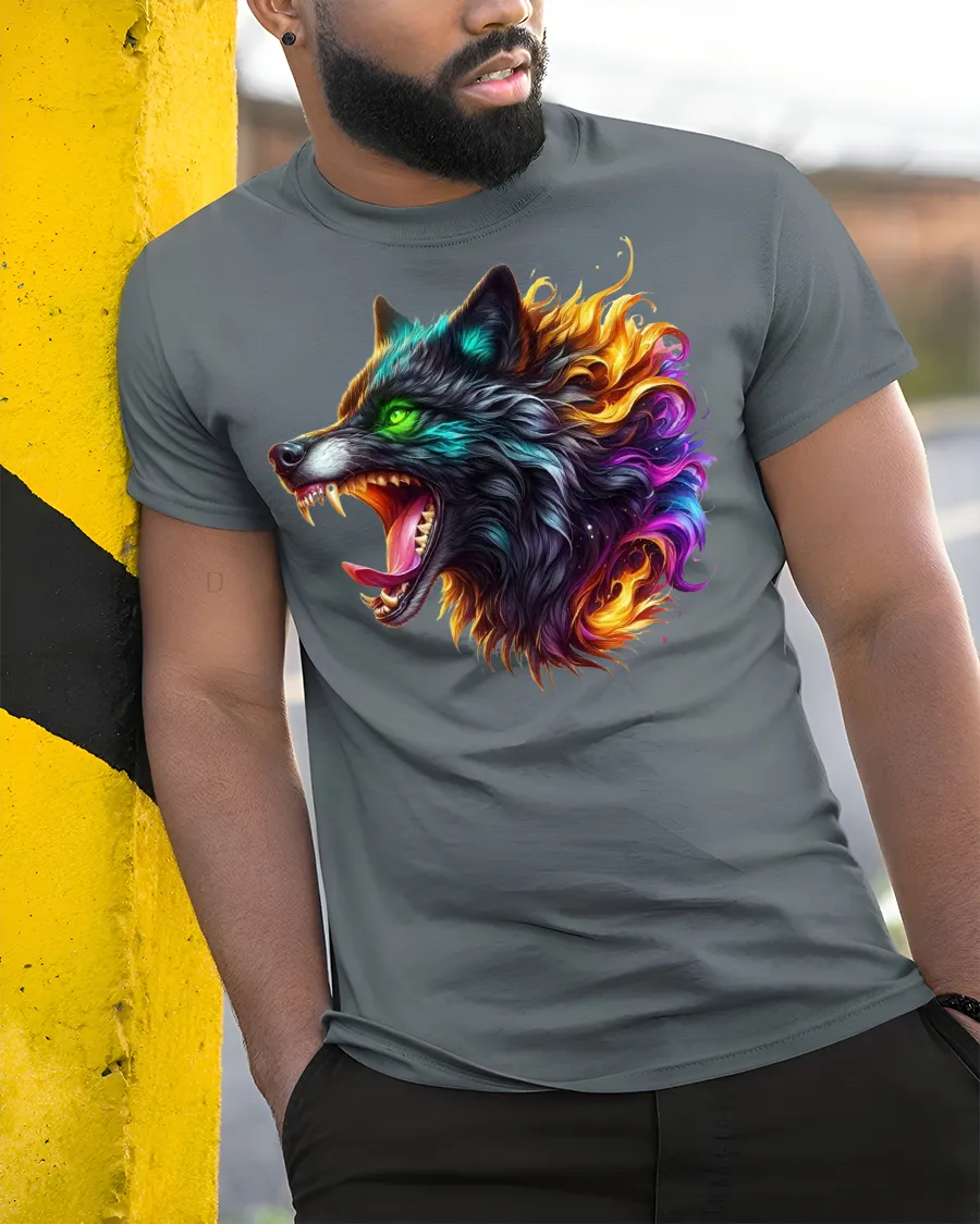 Burning Wolf Head Fiery Tee is the ultimate statement piece for anyone who loves bold designs and powerful symbolism. Featuring a roaring wolf head illuminated with vibrant neon colors and fiery flames, this tee embodies strength, passion, and untamed spirit. The intense green eyes and sharp fangs add a fierce edge that will grab attention wherever you go.