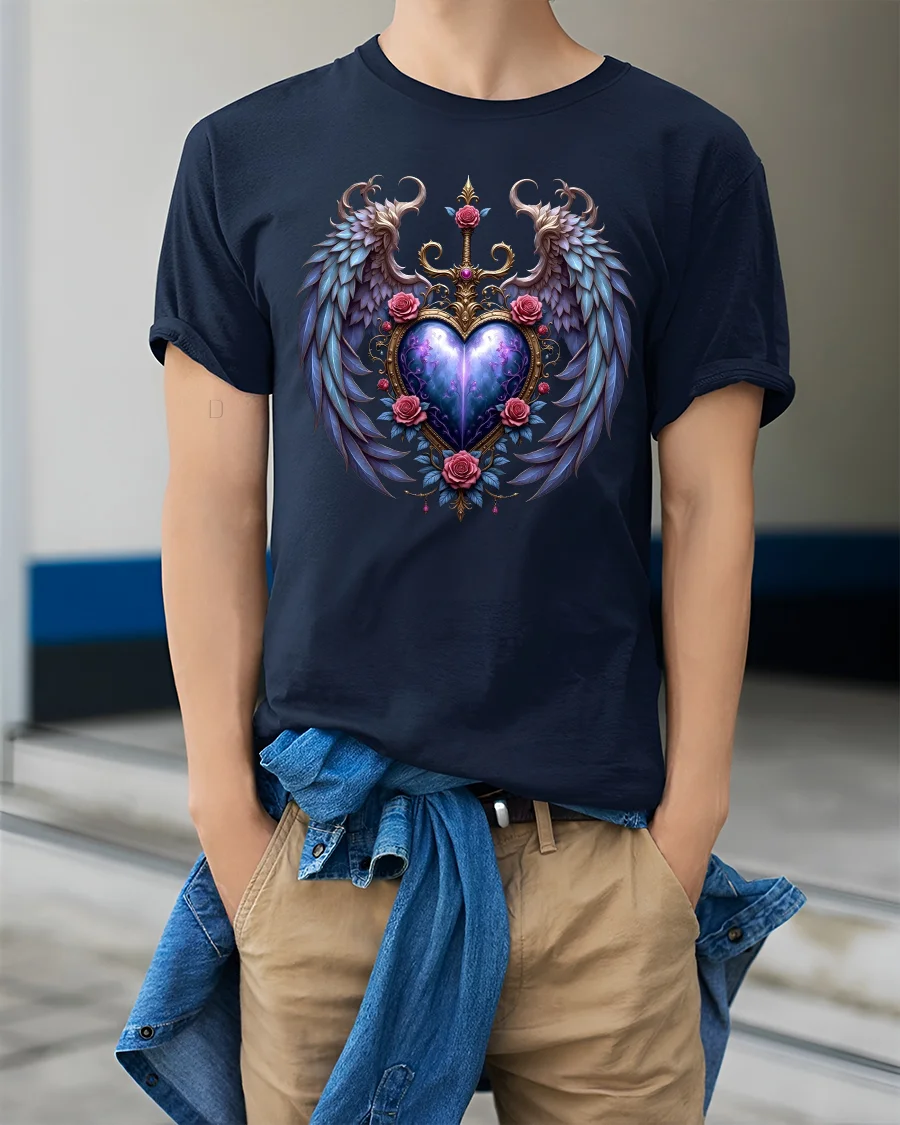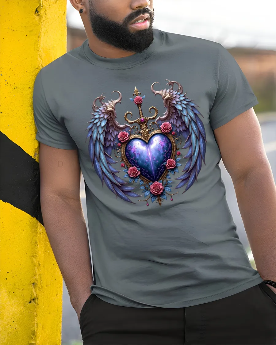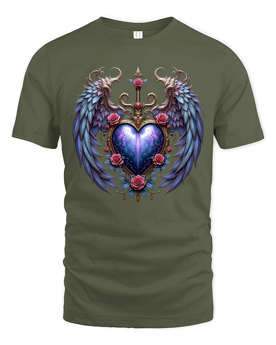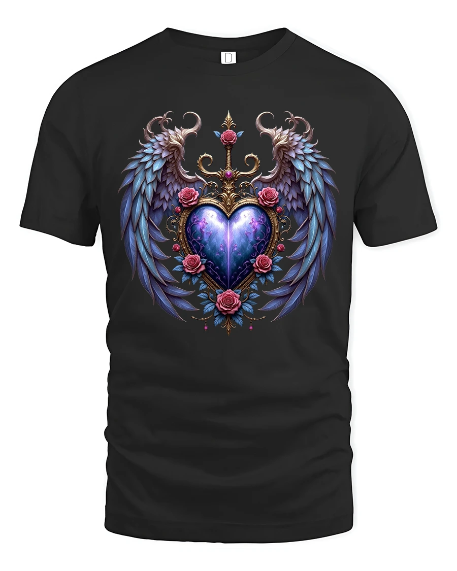 Crafted to elevate your everyday style, the Celestial Heart Wings Tee offers comfort while showcasing your personality. Its detailed artwork brings together themes of love, strength, transformation, and celestial beauty, appealing to fantasy lovers, art enthusiasts, and anyone who appreciates eye-catching graphic prints.