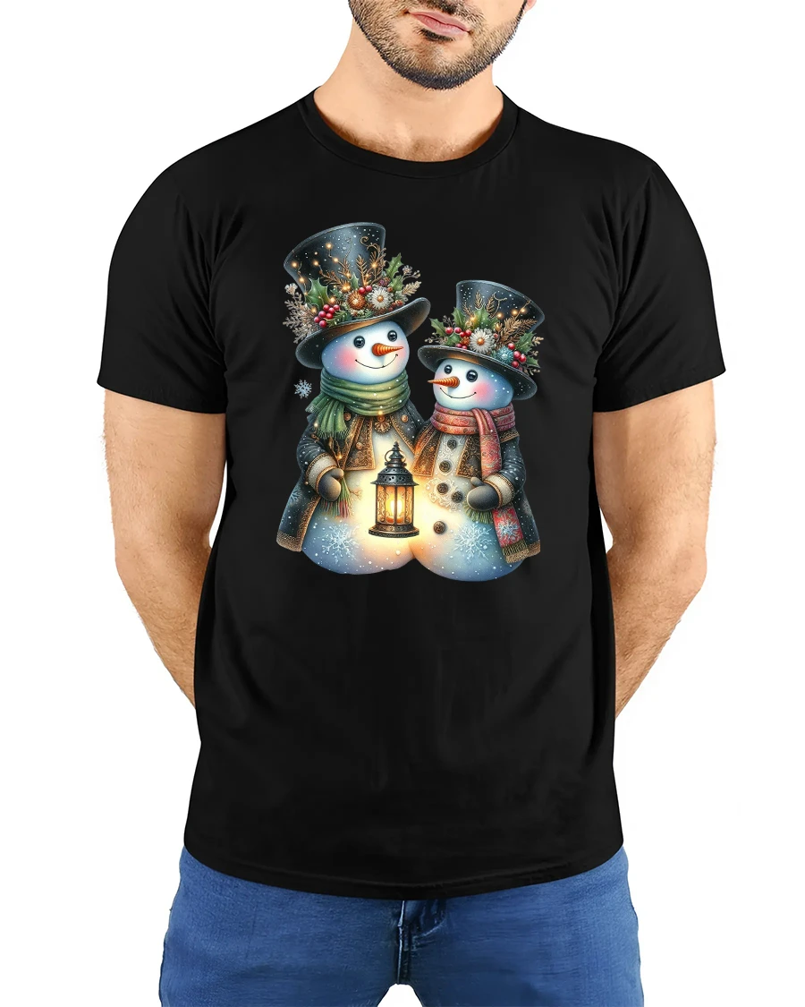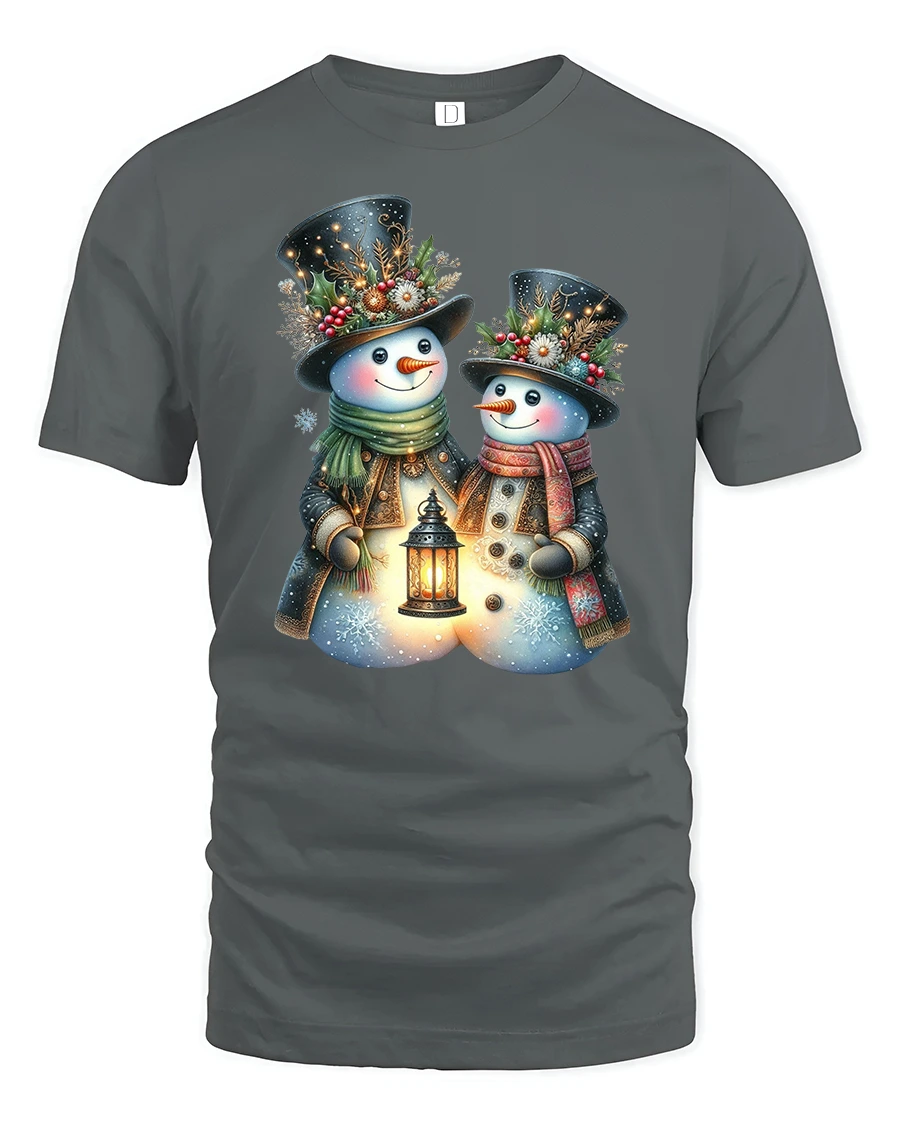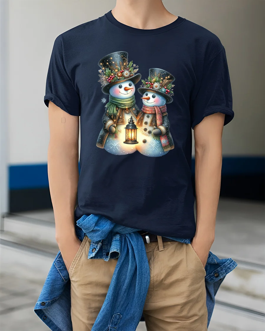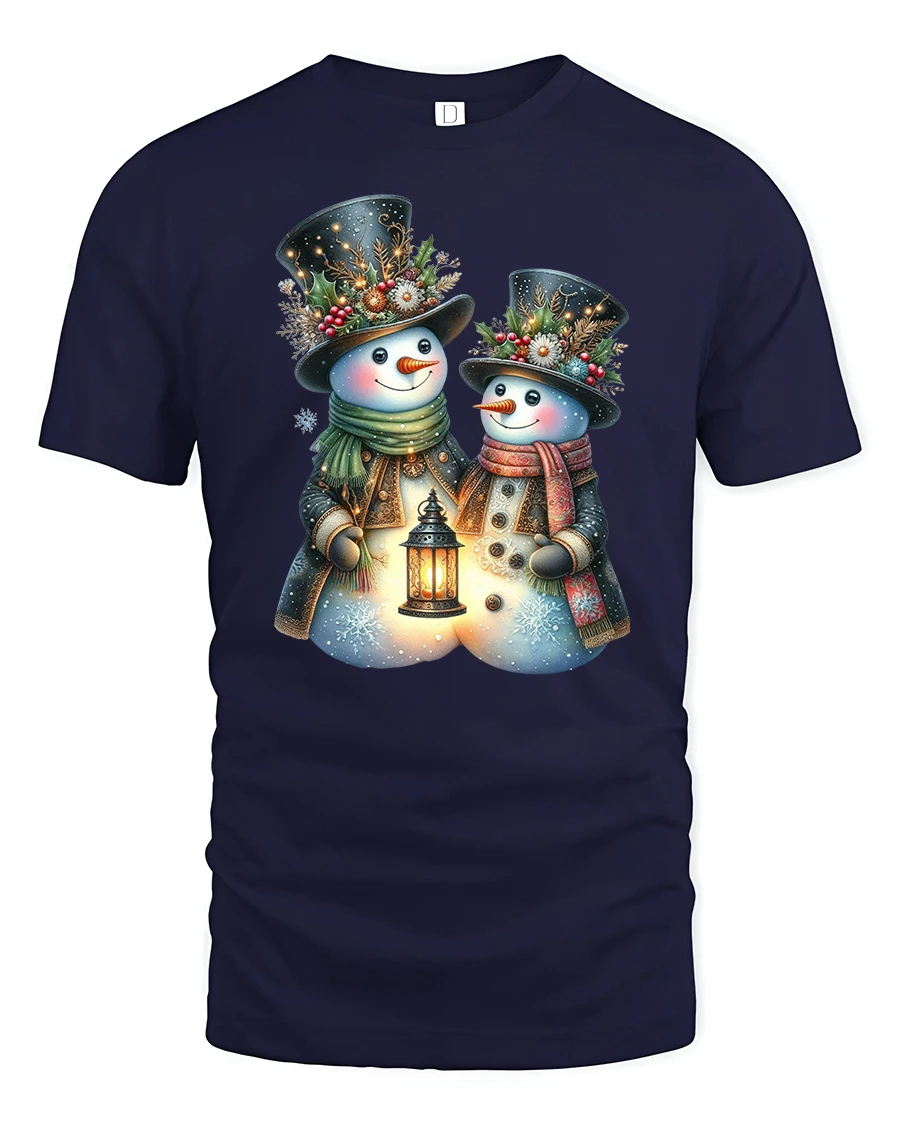 The Charming Snowman Couple Tee with Cozy Winter Lantern Artwork is crafted to bring comfort and festive cheer in equal measure. It makes a lovely choice for holiday gatherings, winter outings, or anyone who enjoys expressive and beautifully illustrated seasonal apparel. Celebrate warmth, joy, and connection with this charming snowman tee.