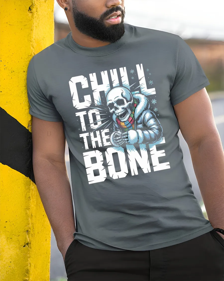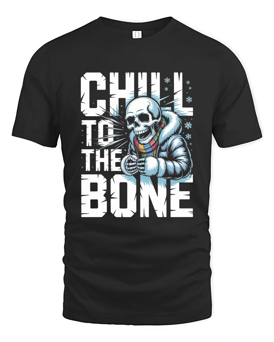 Perfect for fans of bold street style and creative graphics, Chill to the Bone Skeleton Winter Graphic T Shirt delivers long lasting print quality and eye catching detail.