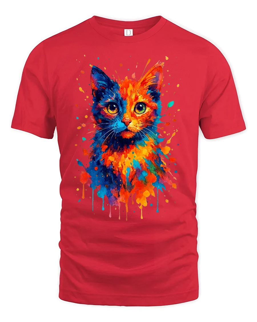 Express your creativity and love for felines with the Color Splash Cat Watercolor Art Creative Graphic Tee.