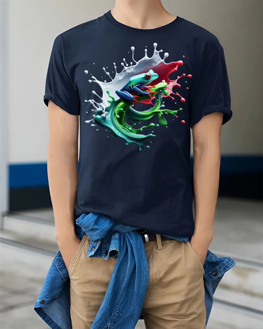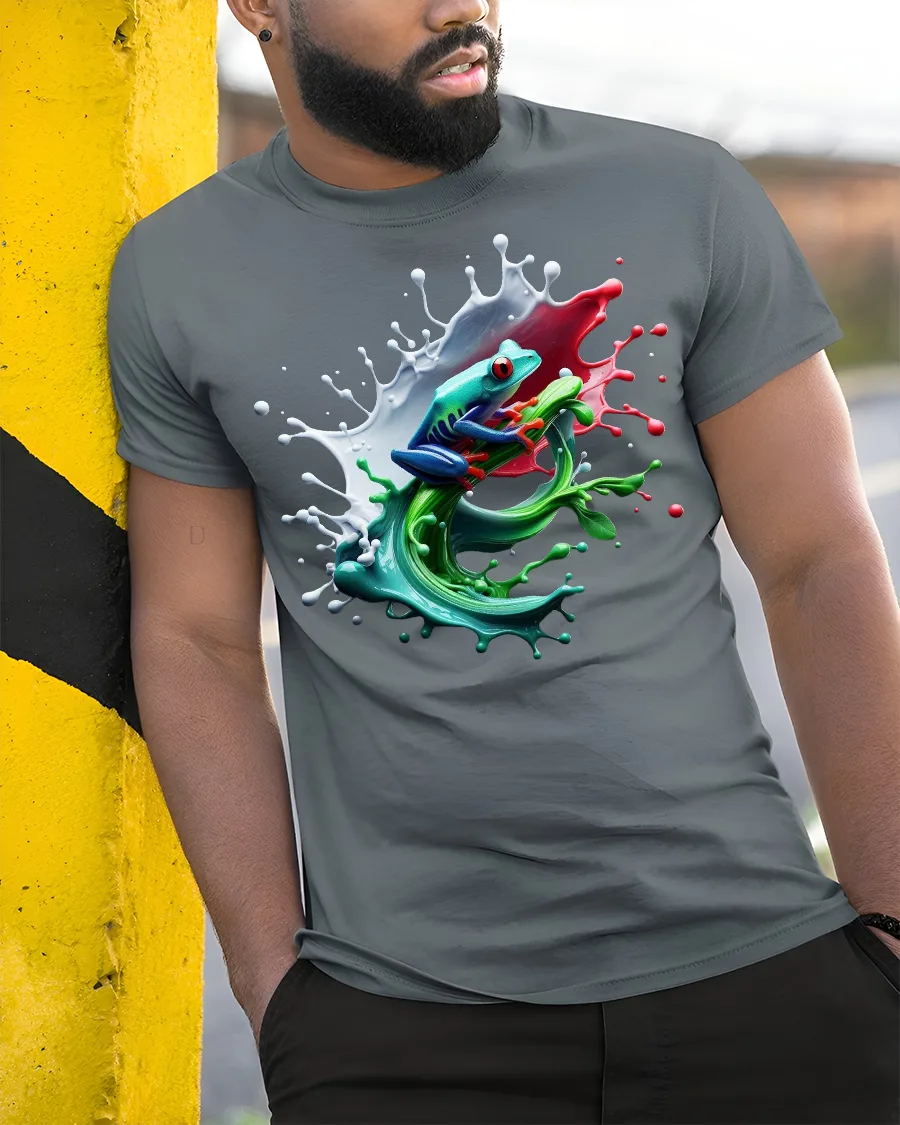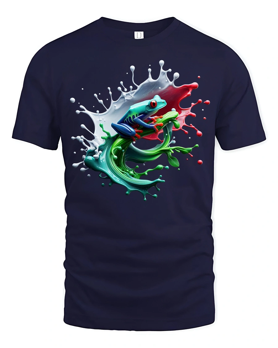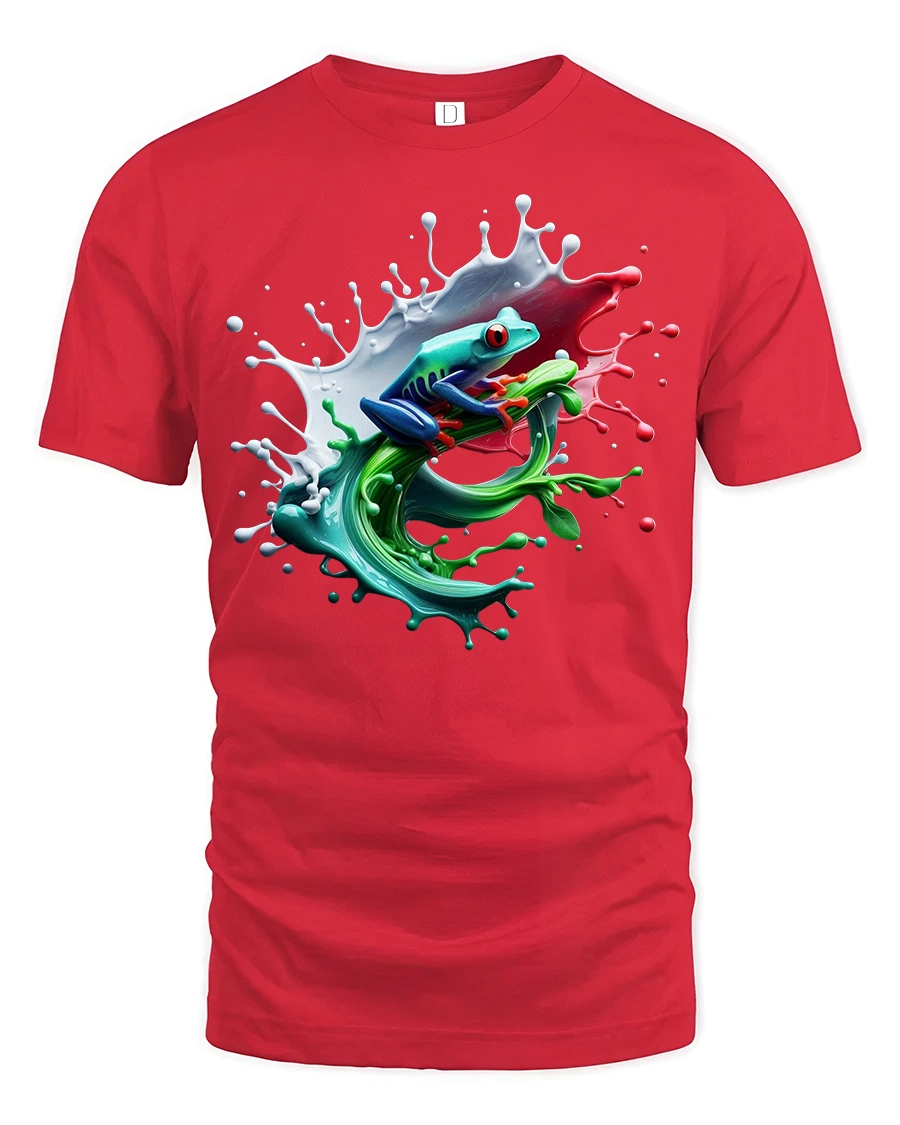 Color Splash Frog Art Tee for Nature Lovers brings together bold artistry and vibrant wildlife energy in one dynamic design. This eye-catching graphic features a brightly colored frog leaping through explosive splashes of paint, creating a powerful visual full of movement and personality. The rich greens, blues, and reds blend into a stunning splash effect that looks both artistic and alive, making it the perfect tee for anyone who loves frogs, nature, or colorful artwork.