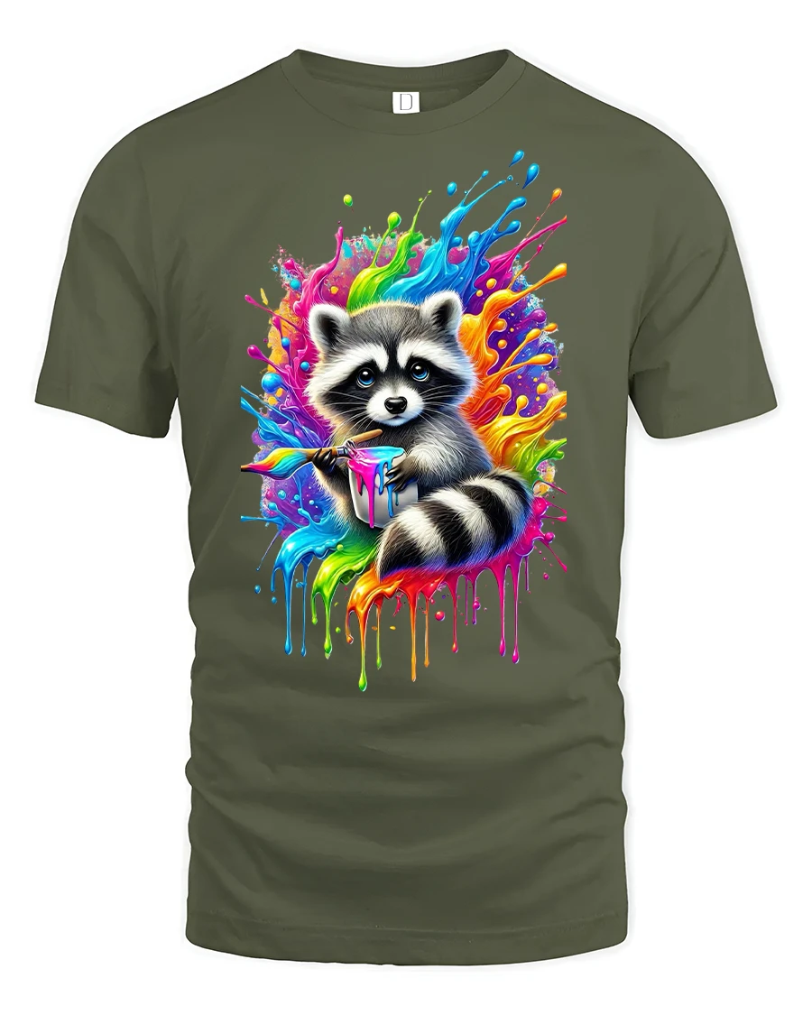 Color Splash Raccoon Painter Art Graphic T-shirt is a vibrant blend of playful creativity and bold design. Featuring an adorable raccoon holding a paintbrush with rainbow splashes exploding around it, this tee is perfect for anyone who loves unique, artistic fashion. The colorful details bring the raccoon illustration to life, making it a fun conversation starter and an instant favorite in your wardrobe.