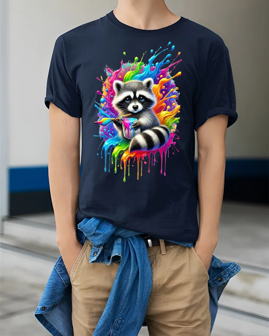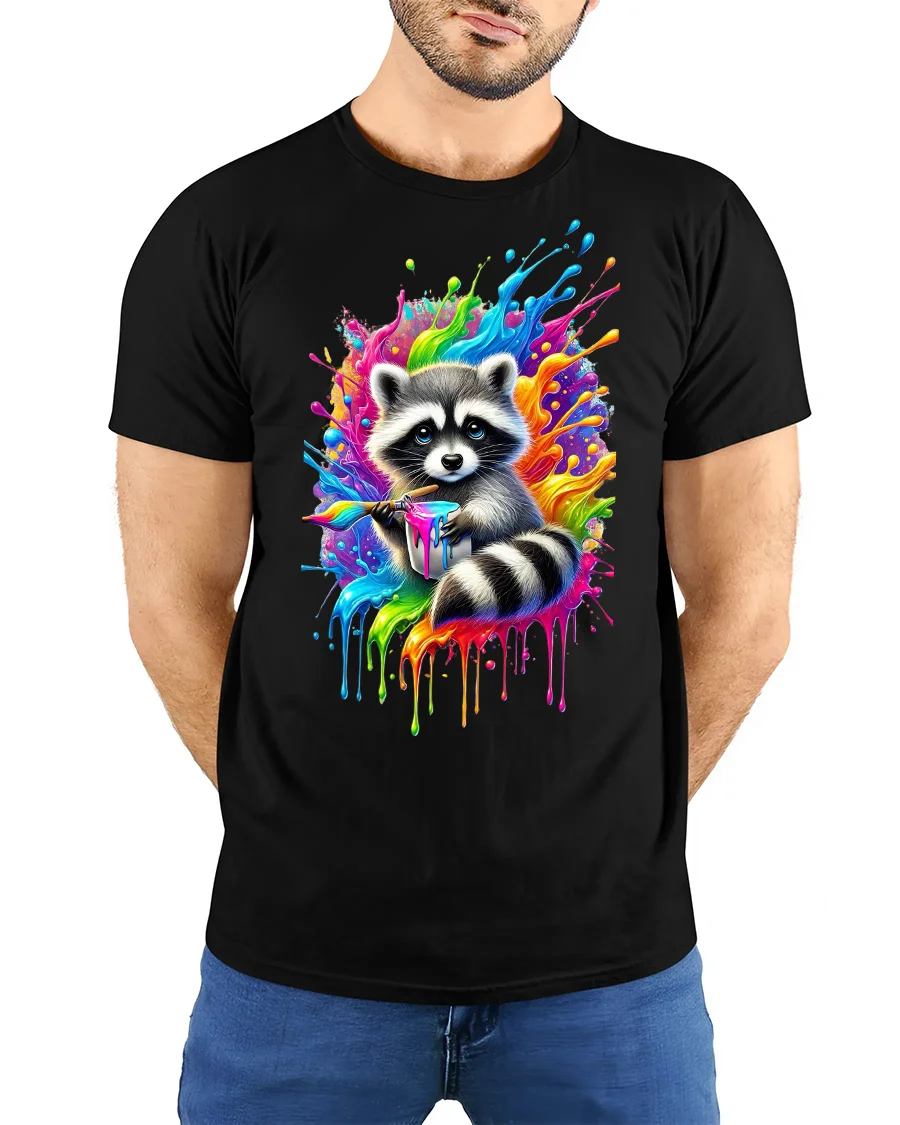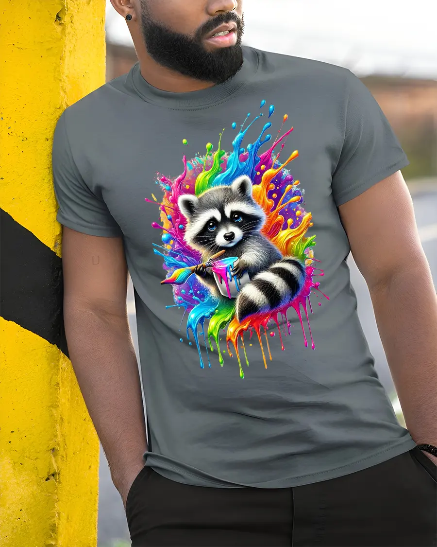This rainbow raccoon t-shirt also makes a thoughtful gift for animal lovers, artists, or anyone with a creative spirit. Pair it with jeans for a casual look, or wear it under a jacket for a more stylish streetwear vibe. Express your colorful side with this artistic raccoon print tee and stand out wherever you go.