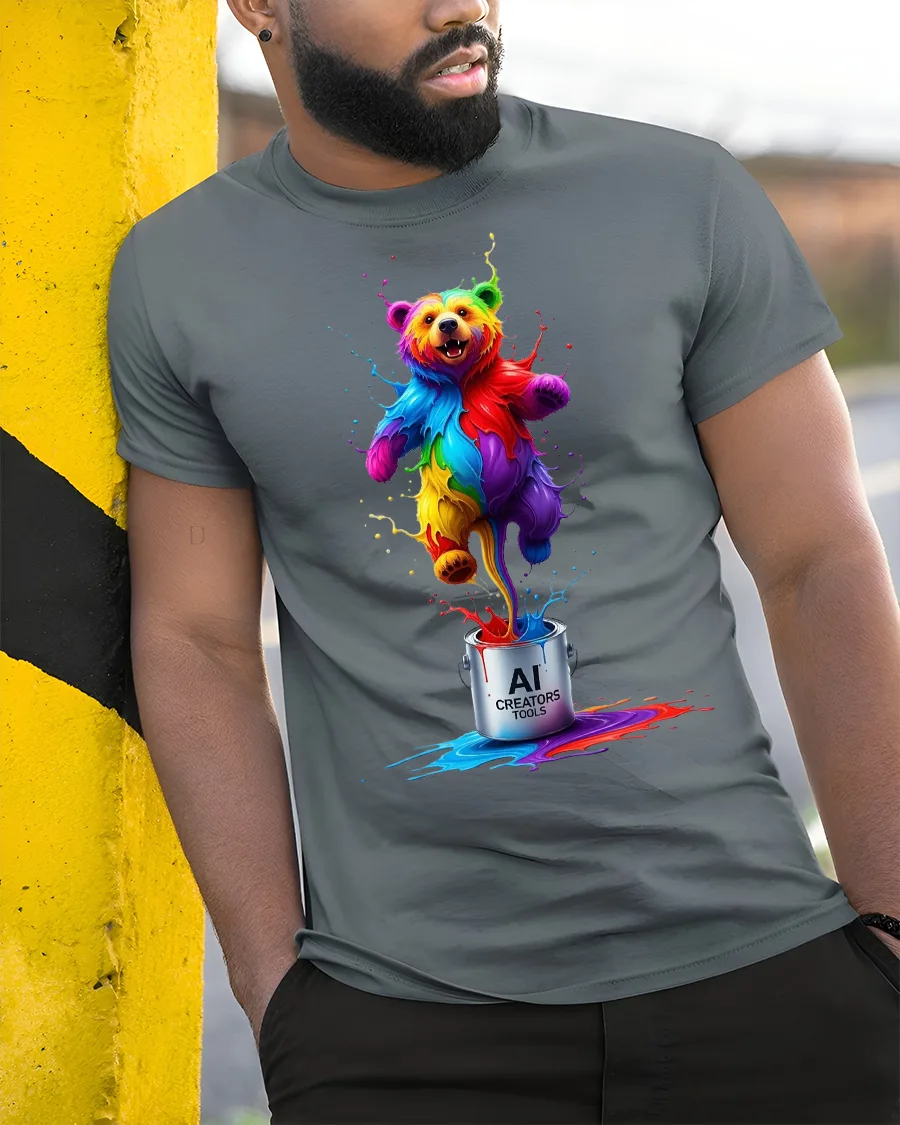 Colorful AI Creator Bear Tee With Explosive Creative Energy pairs effortlessly with casual outfits for a relaxed yet expressive style.