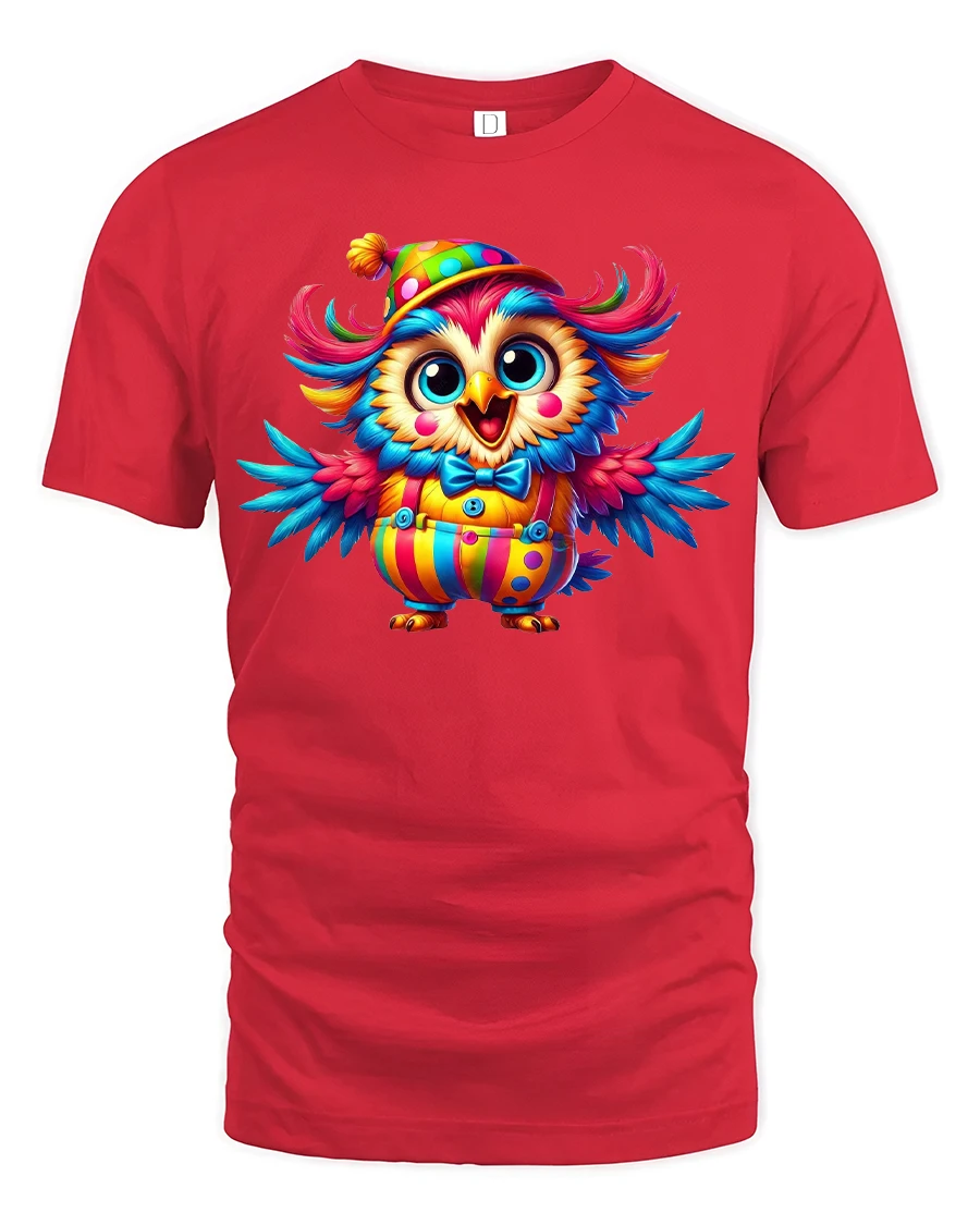Add a touch of whimsy and vibrant personality to your wardrobe with the Colorful Clown Owl Cartoon Graphic Fun Party T-Shirt. It’s not just a shirt—it’s a fun expression of humor, creativity, and colorful charm that will brighten any occasion.