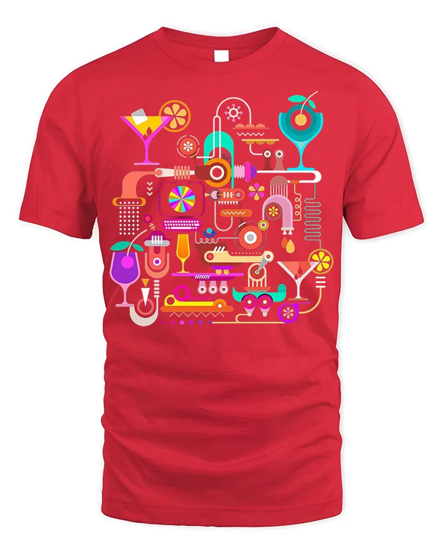 Colorful Cocktail Machine Art T-shirt for Men - red t-shirt on white background