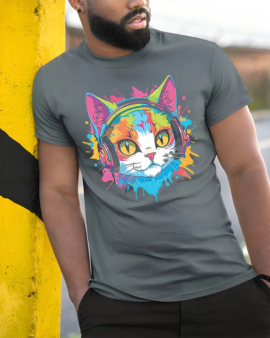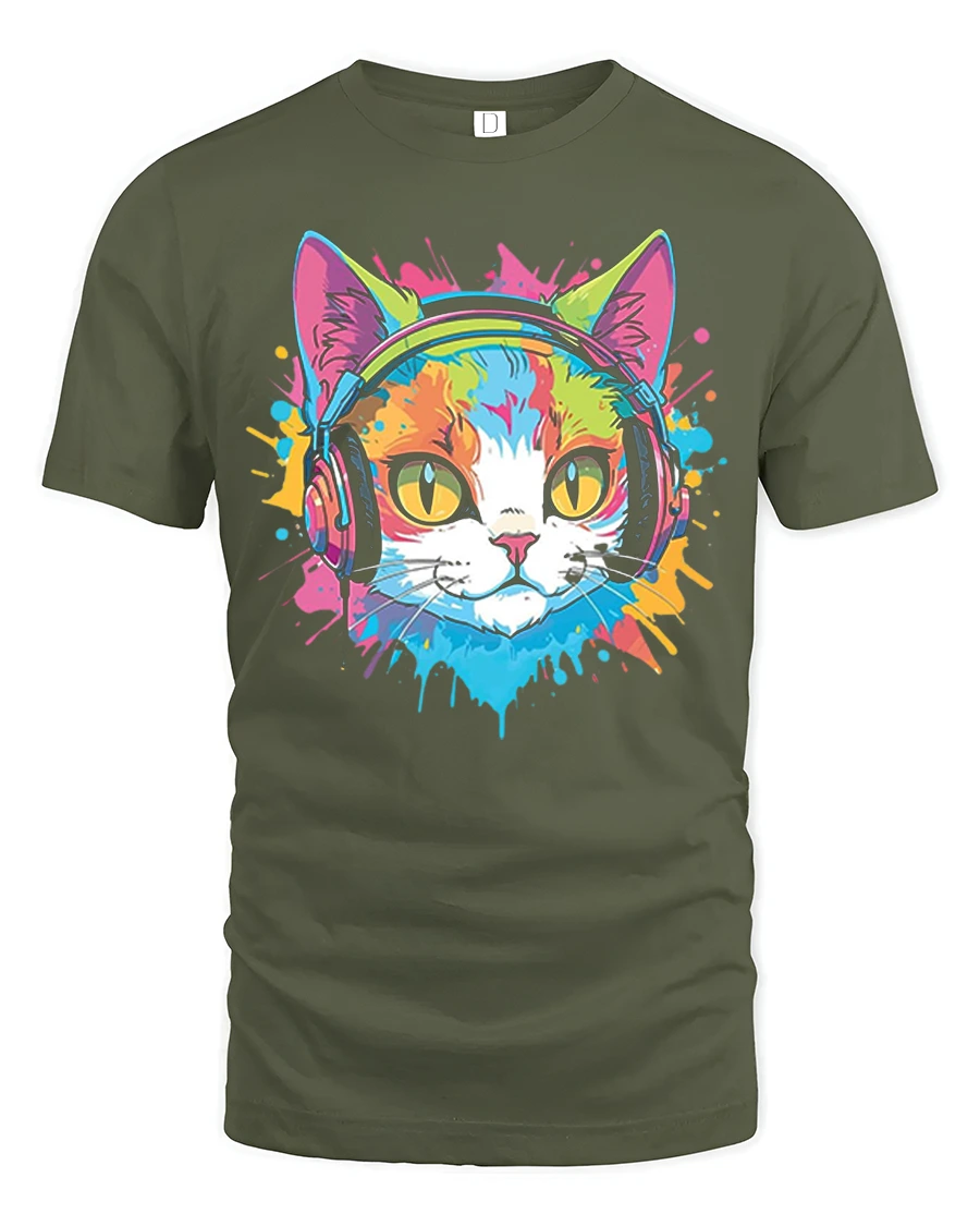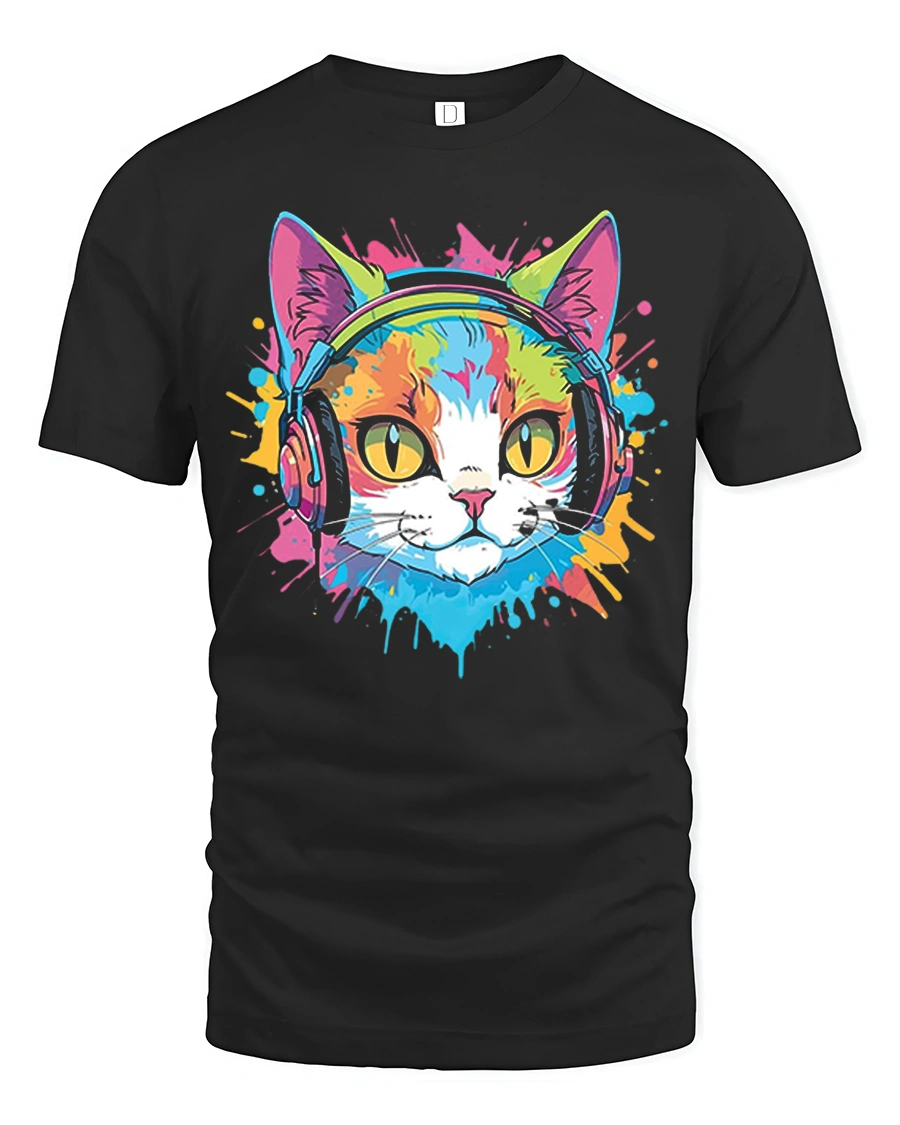 Colorful DJ Cat Wearing Headphones Pop Art Graphic Tee Tshirt brings bold creativity music energy and modern art vibes into one striking design.