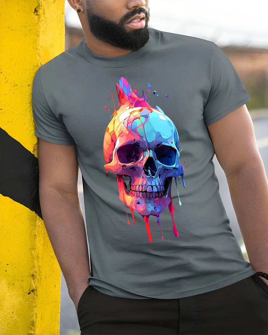 Unleash your unique style with our Colorful Dripping Skull T-Shirt. This striking tee features a bold and abstract skull design, bursting with an array of vibrant, dripping colors. The psychedelic effect adds an edgy yet artistic touch, making this tee a true standout.