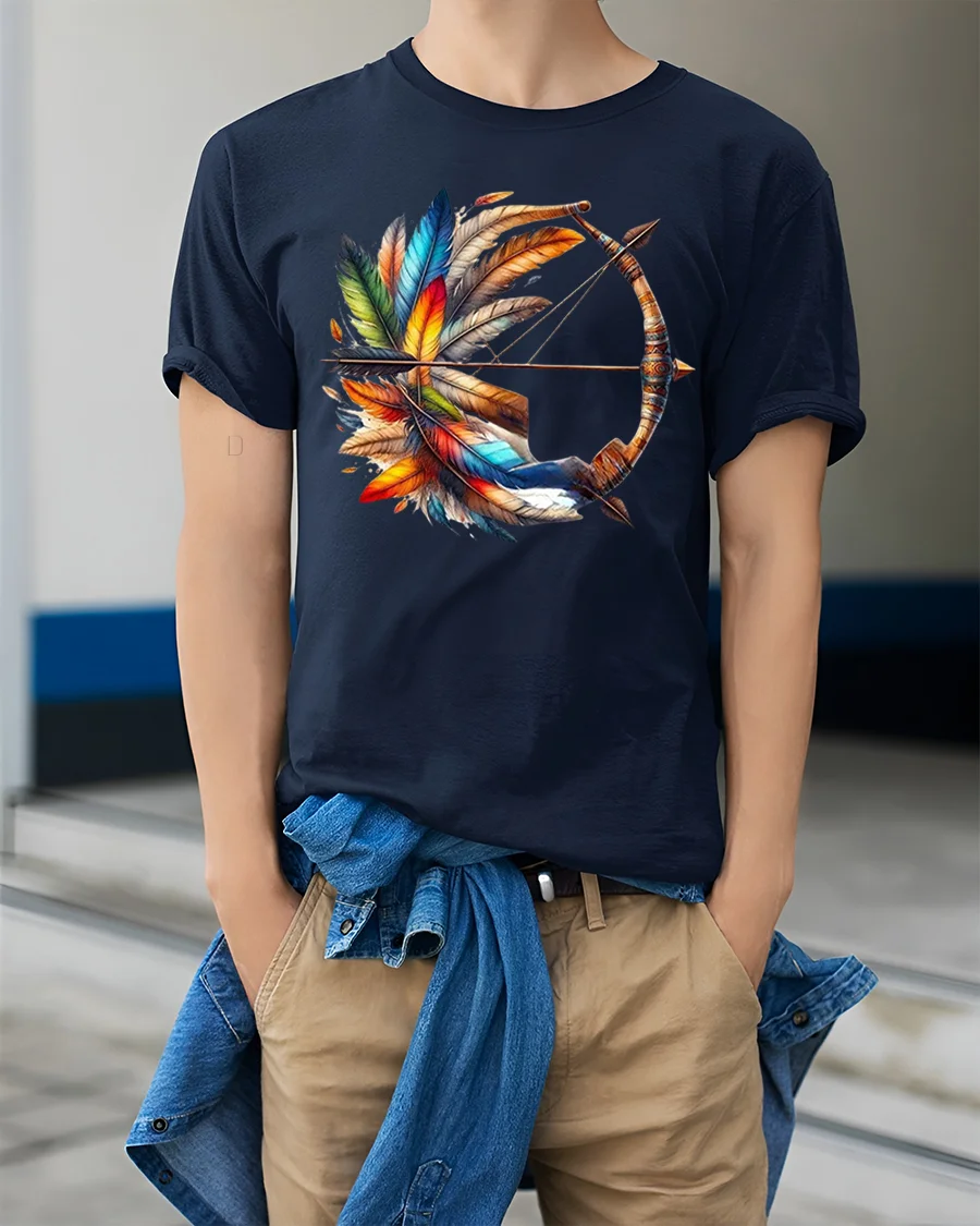 Celebrate strength, focus, and artistic spirit with the Colorful Feather Bow And Arrow Graphic T Shirt. This striking design blends a detailed bow and arrow with vibrant layered feathers, creating a bold statement piece that captures attention instantly. The feather bow and arrow t shirt reflects freedom, precision, and individuality through its rich colors and intricate artwork that stand out in any casual setting.