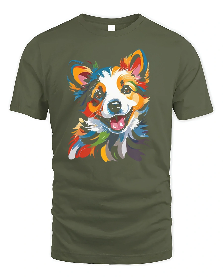 Colorful Happy Dog Art Illustration Graphic Tshirt Joy delivers a burst of positivity and warmth through expressive artistic design.