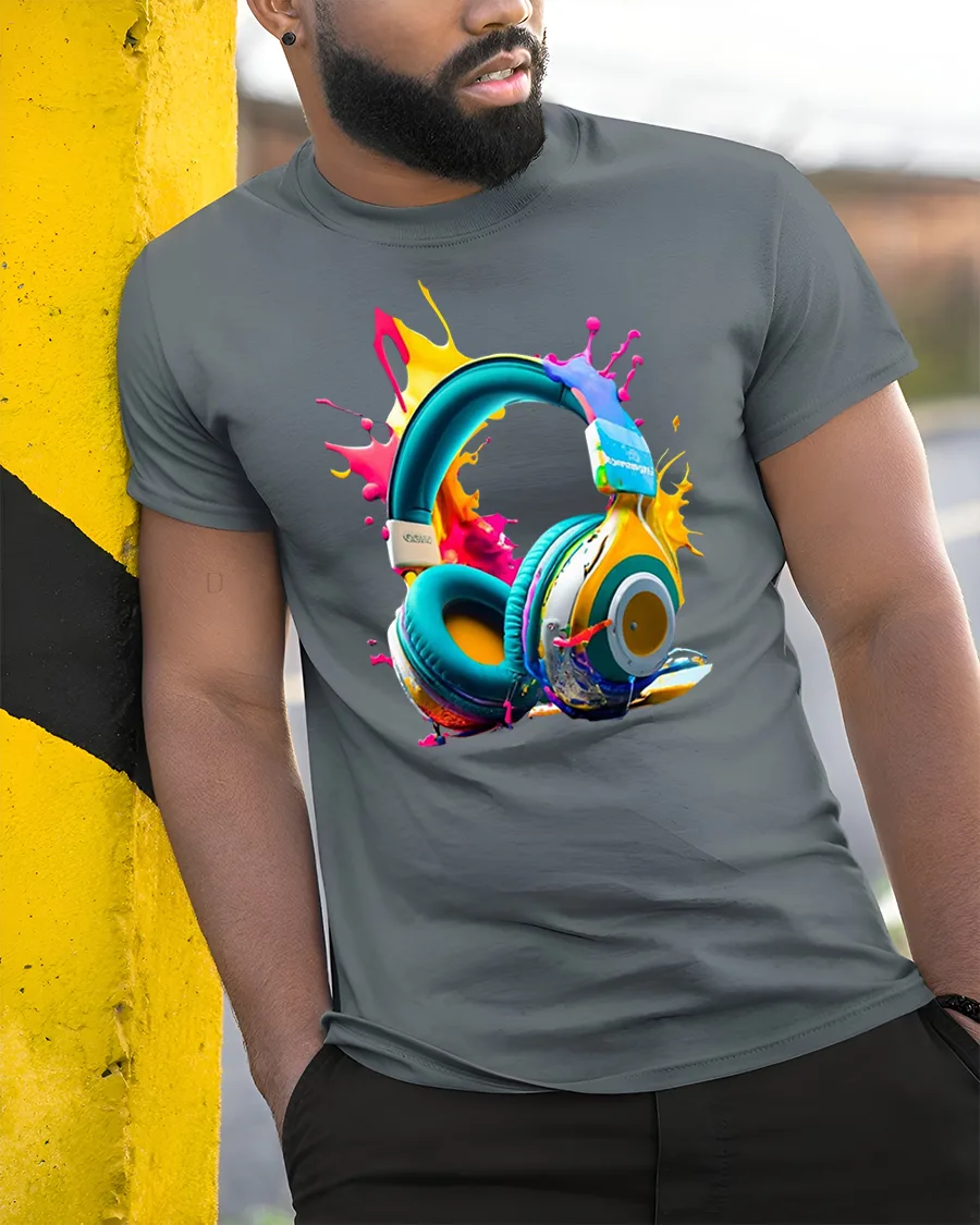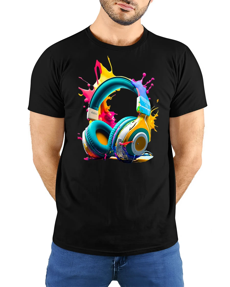 Colorful Headphones Splash Art Graphic T Shirt is ideal for anyone who loves music and creative visual expression.