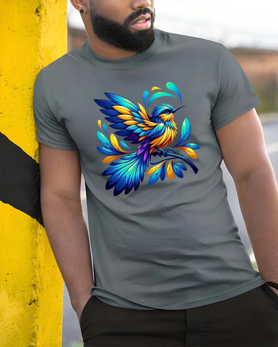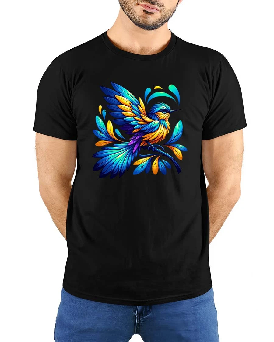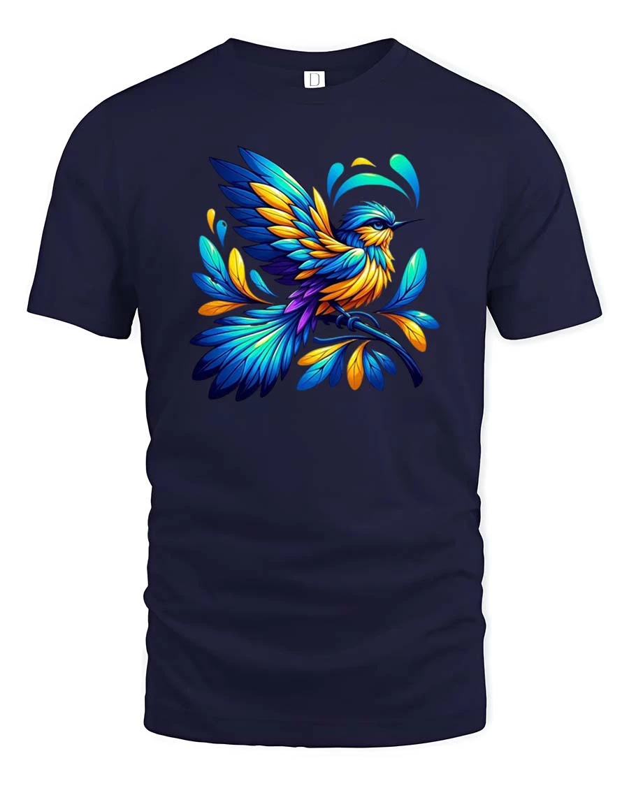 Colorful Hummingbird Artistic Nature Lover Graphic T-shirt features a stunning design inspired by the beauty of wildlife and vibrant color harmony.