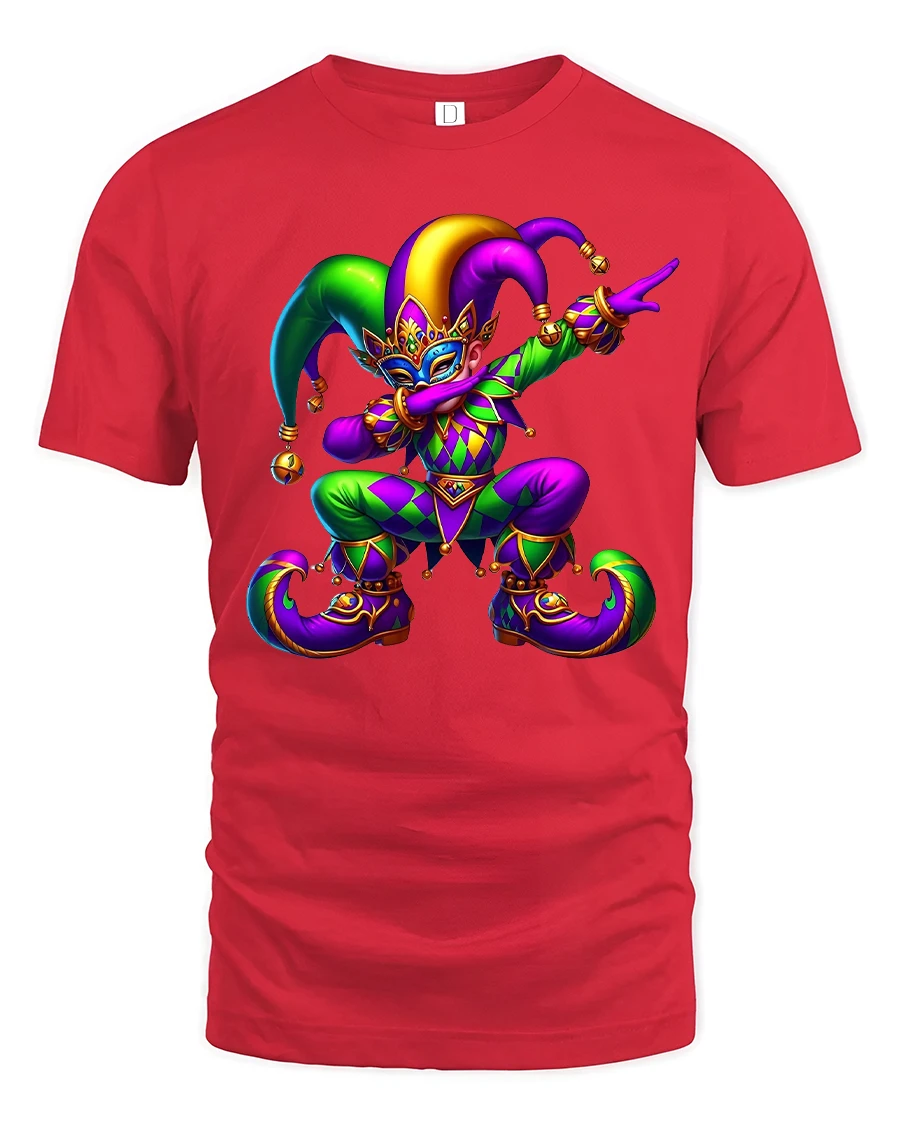 Colorful Jester Carnival Tee features a bold and energetic jester captured in a playful dynamic pose.