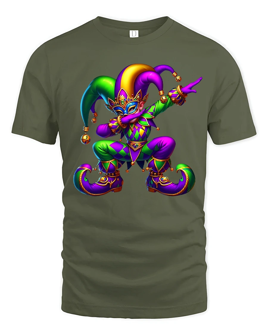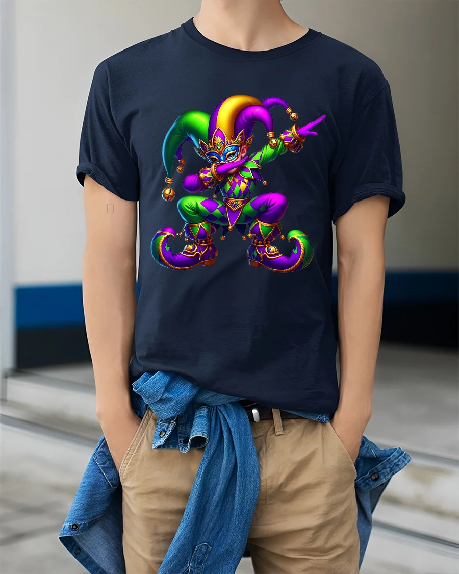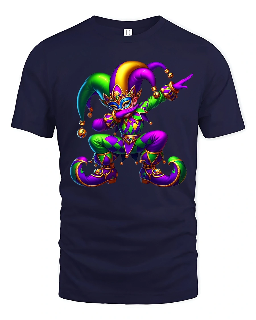 Tags: bold color art tee, carnival costume tshirt, carnival jester tee, colorful clown tshirt, creative art t shirt, fantasy art tshirt, festival fashion tee, festival graphic tee, fun character tshirt, jester t shirt, masquerade t shirt, playful graphic tee, statement graphic tee, vibrant jester shirt, whimsical design tshirt