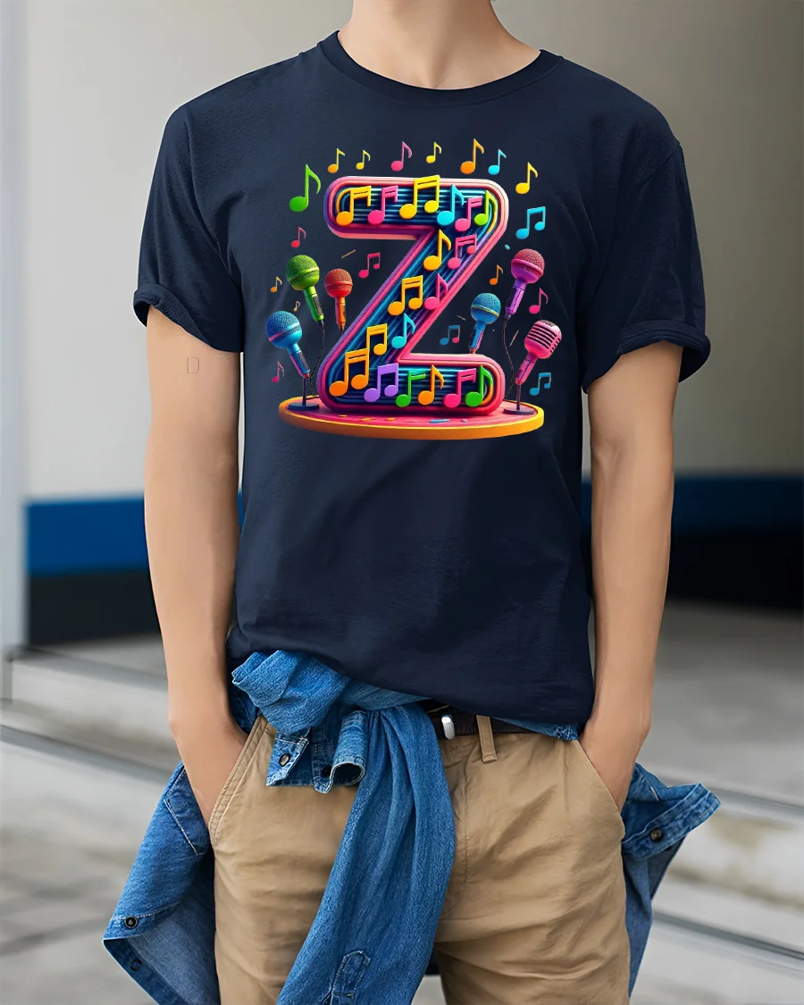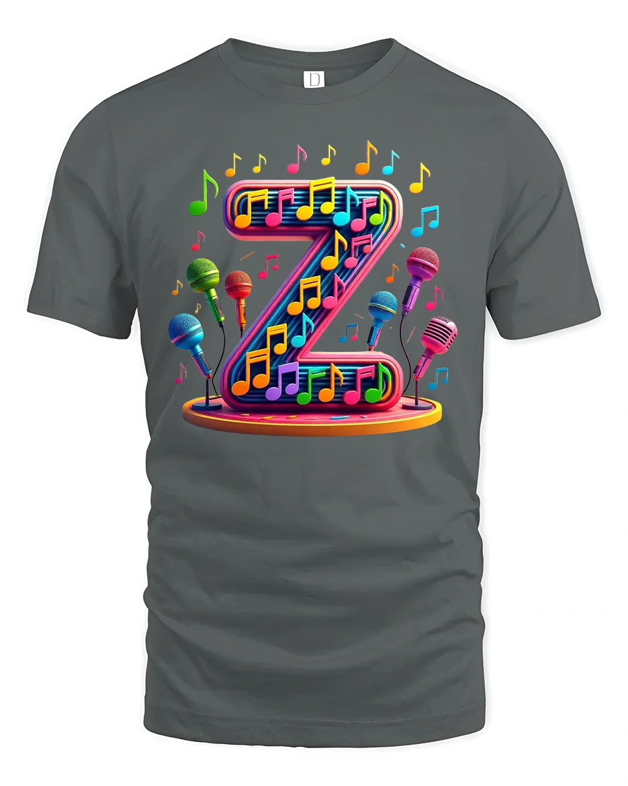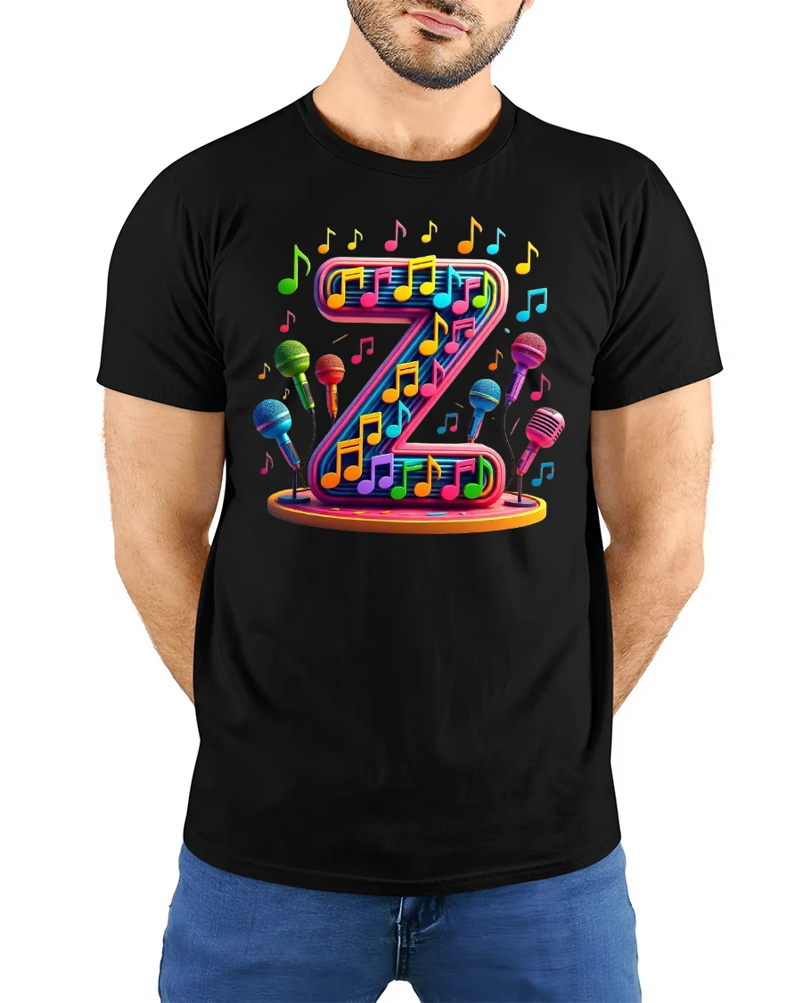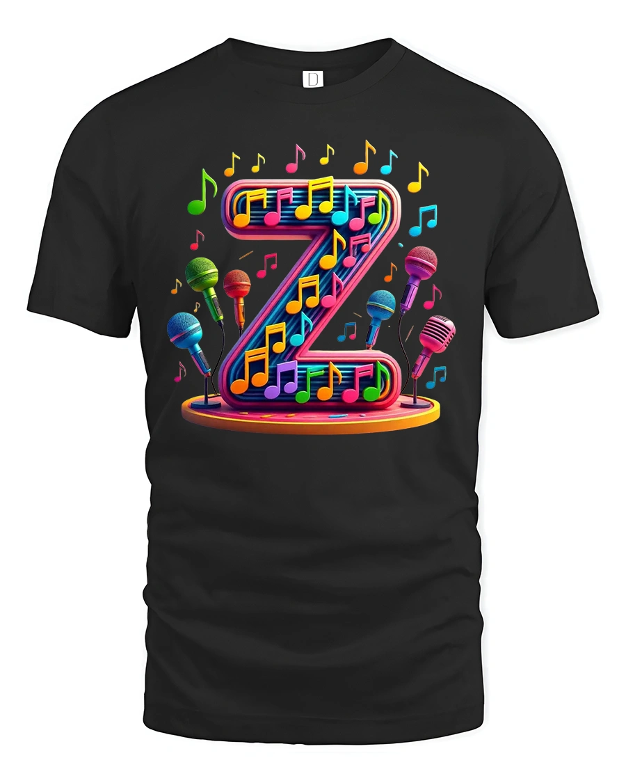 Be the first to review “Colorful Letter Z Music Notes Microphone Graphic Art T-Shirt” Cancel reply