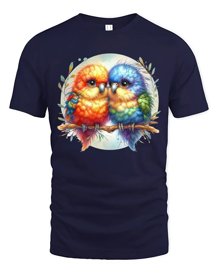 The Colorful Love Birds Watercolor Art Graphic T Shirt Cute Style captures warmth, charm, and artistic beauty in one delightful design.