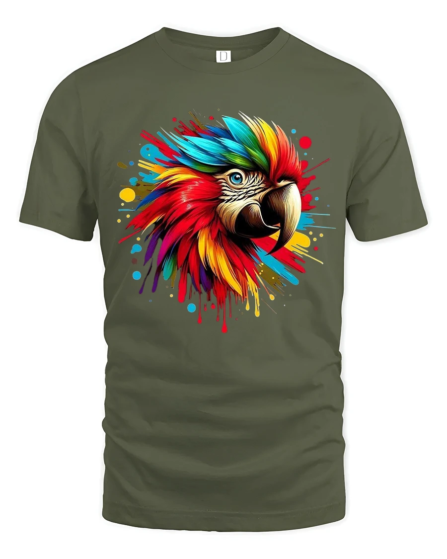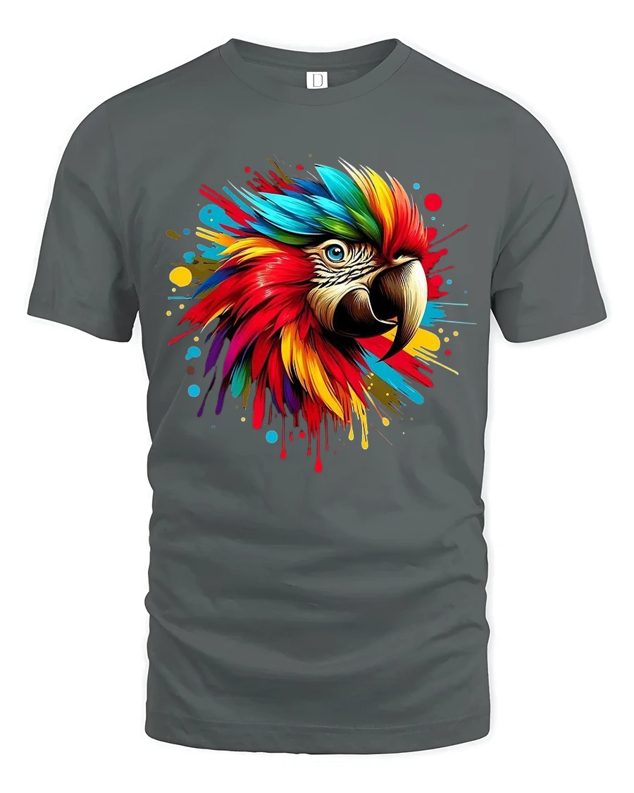 The Colorful Macaw Parrot Splash Art Graphic T Shirt Bold Tee brings energy creativity and tropical beauty into one powerful design.