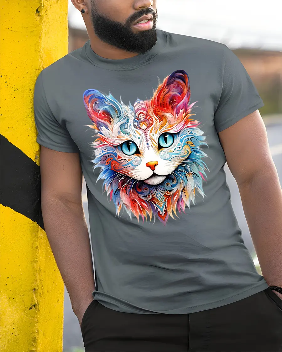 Colorful Mandala Cat Face Graphic T Shirt is perfect for people who love expressive art and unique animal designs.