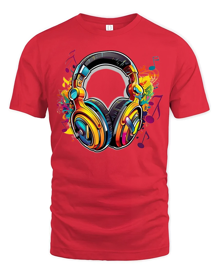 Colorful Music Headphones Art Tee Vibrant Sound Graphic T Shirt - red t-shirt on white background